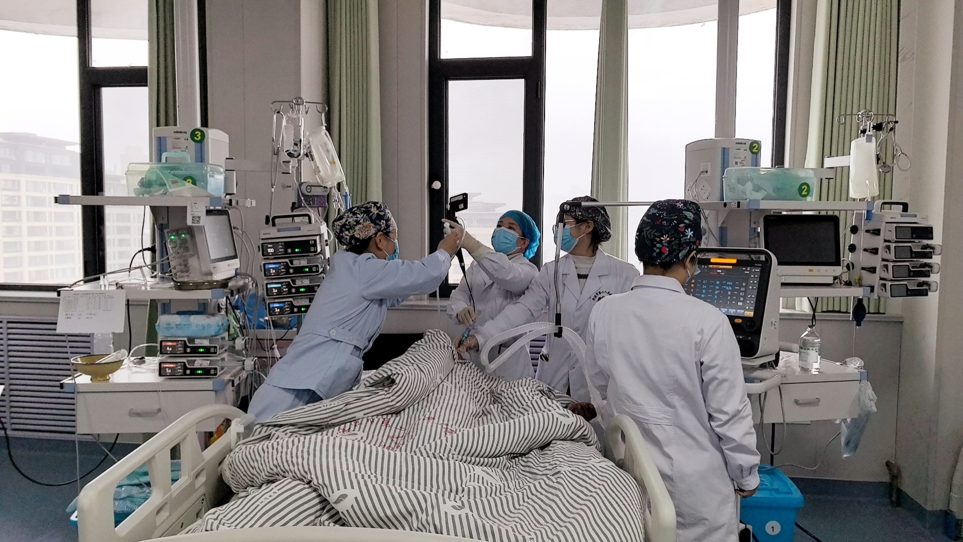 蒋万里主任立即给刘大叔进行高流量给氧,但呼吸衰竭情况仍不能纠正,与家属沟通后,给予镇静镇痛条件下气管插管连接呼吸机辅助通气。