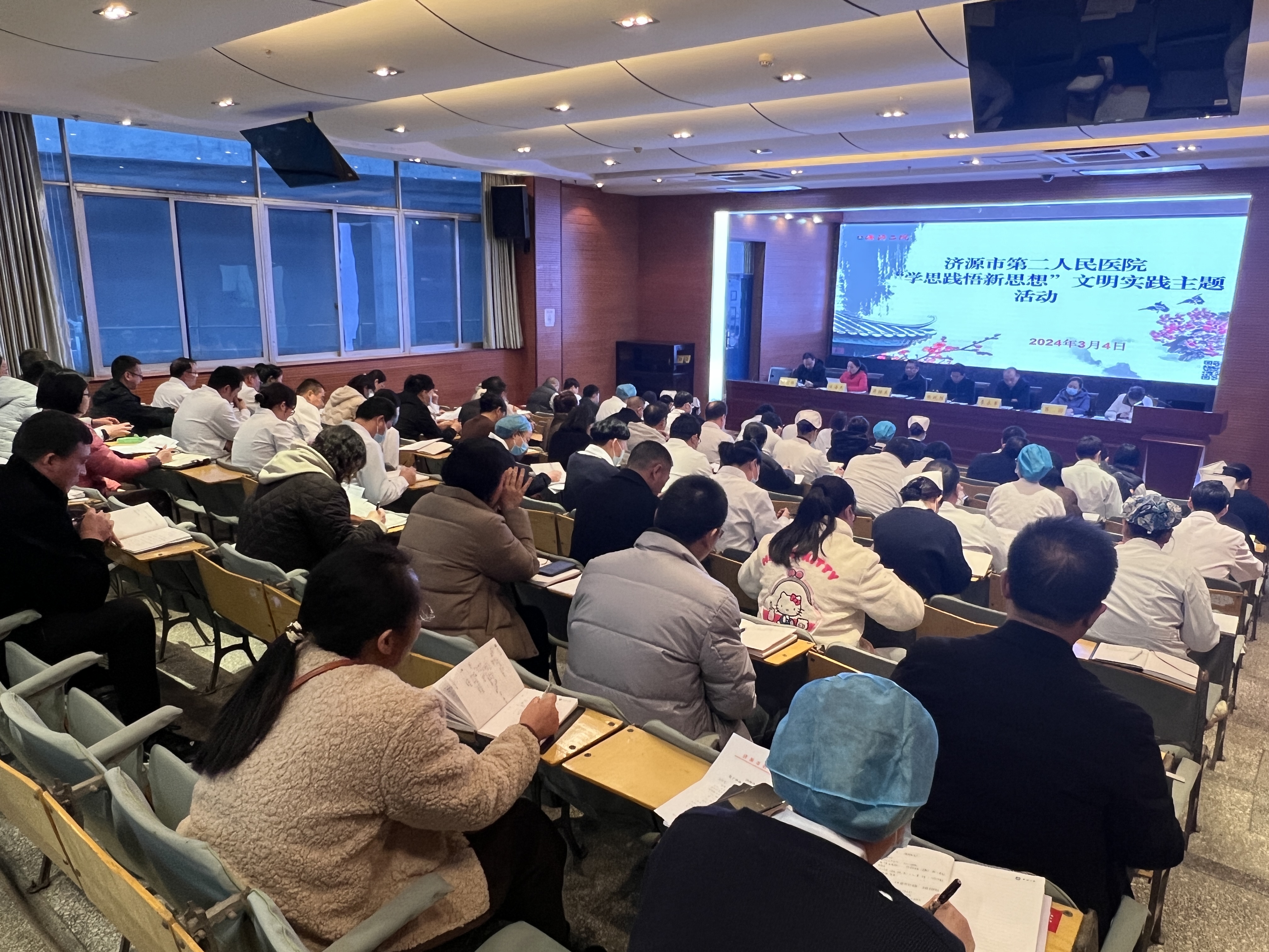为学习贯彻习近平新时代中国特色社会主义思想、贯彻落实习近平文化思想,落实落细党的二十大精神,念好“学”“思”“践”“悟”四字诀,3月4日下午,济源市第二人民医院在多媒体教室开展“学思践悟新思想”主题实践活动,学习中国好人康景才的先进事迹。