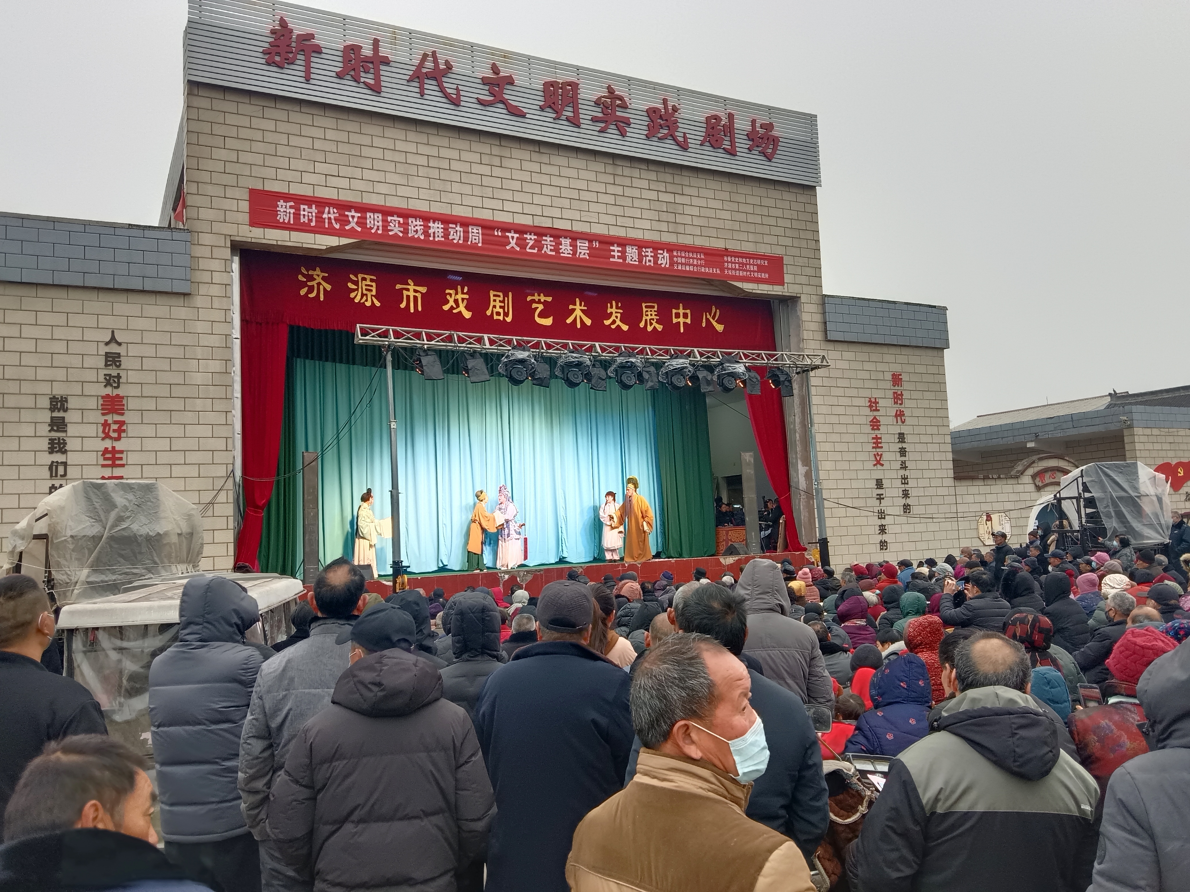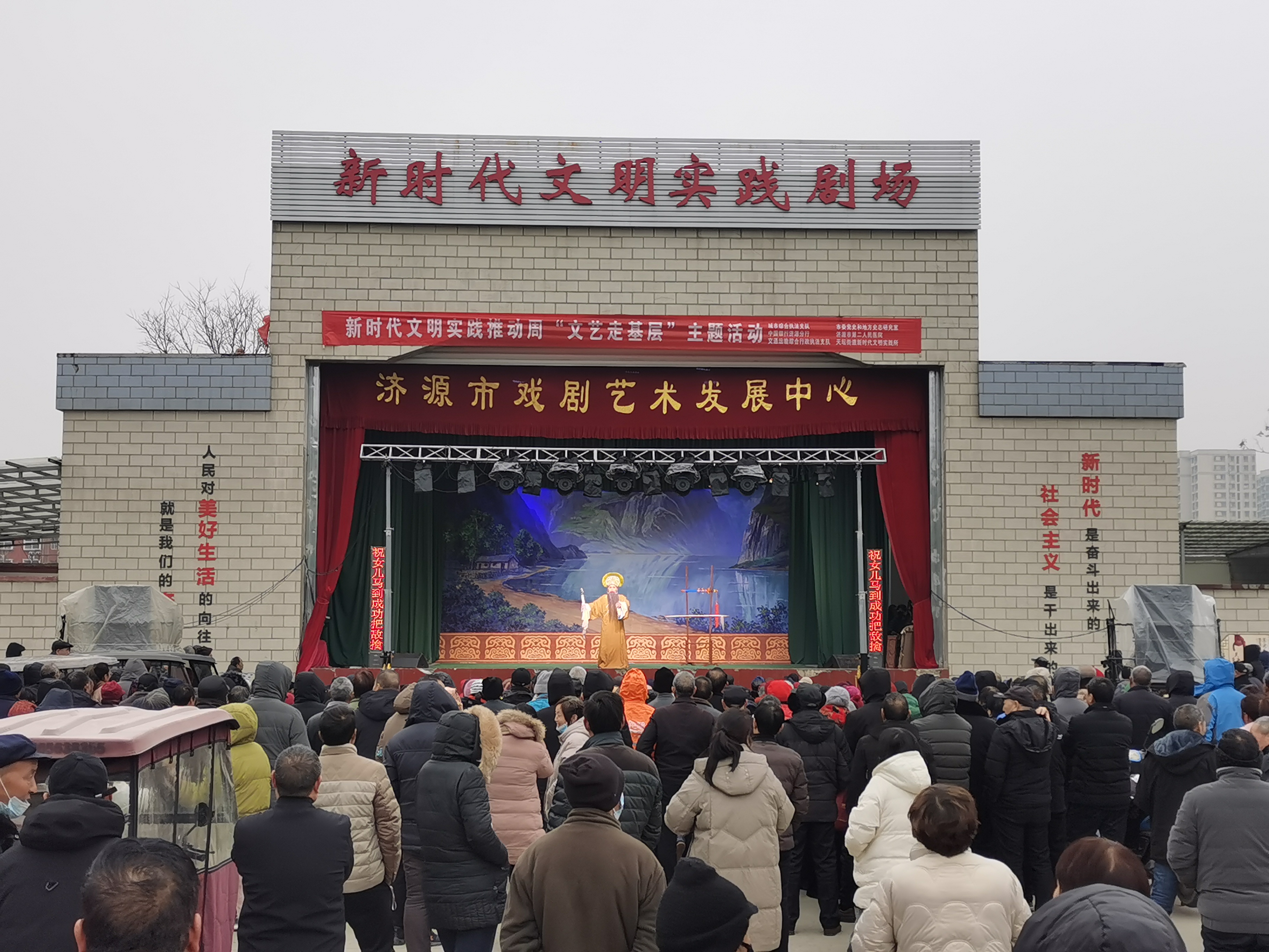 人民群众对美好生活的向往就是我们的奋斗目标,这其中就包括群众日益增长的精神文化需求。听说有戏曲表演,附近的村民早早地在此等候。济源市戏曲艺术发展中心为了让群众能欣赏到高水平的演出,年前特地新排了几出戏,轮流播放,当天上演的是《花木兰》,木兰替父从军的故事人人皆知,但经过重新编排后,又有了新的韵味。村民们互相转告,大家有的搬着小马扎,有的骑着电动车,有的骑着三轮车,各有各的装备,听得津津有味。现场不时传来阵阵掌声、叫好声,让群众在家门口过了一把戏瘾。一个个优秀传统剧目,充分展现了中华优秀传统文化的独特魅力,丰富了群众文化生活。