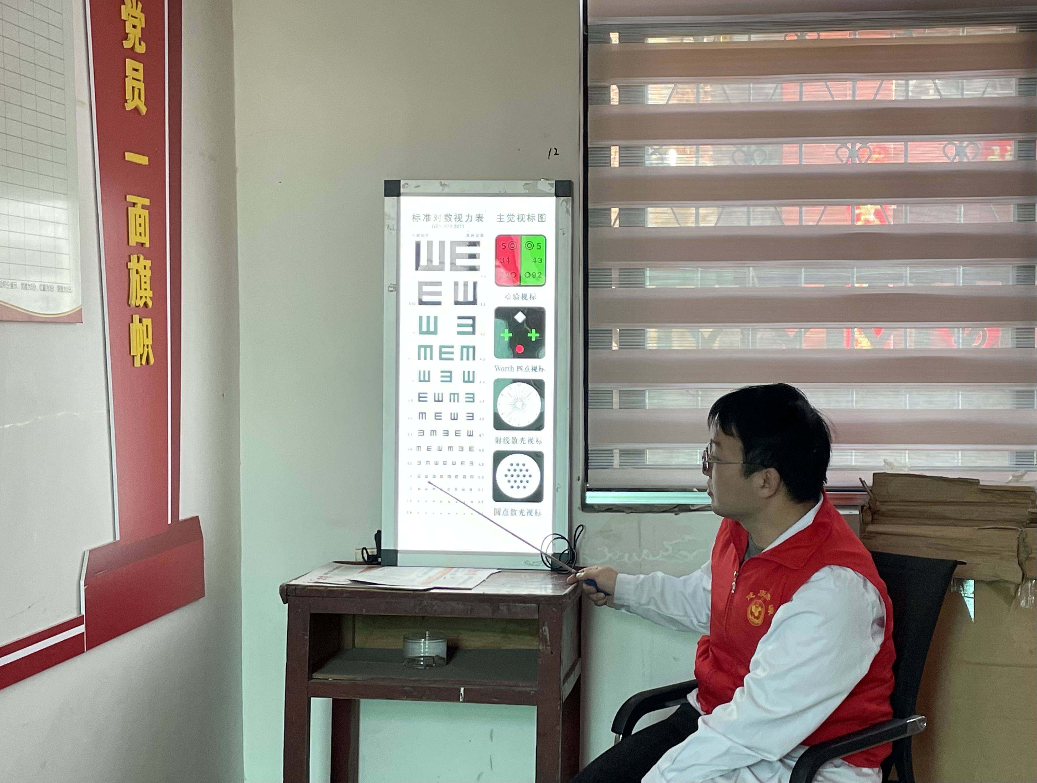 与此同时,眼科主任郭艳波和医生杨正辉用专业设备为村民免费进行了视力检查,认真仔细地询问每一位村民的病史及身体状况,耐心解答他们提出的问题,并根据检查结果提出针对性诊疗建议。