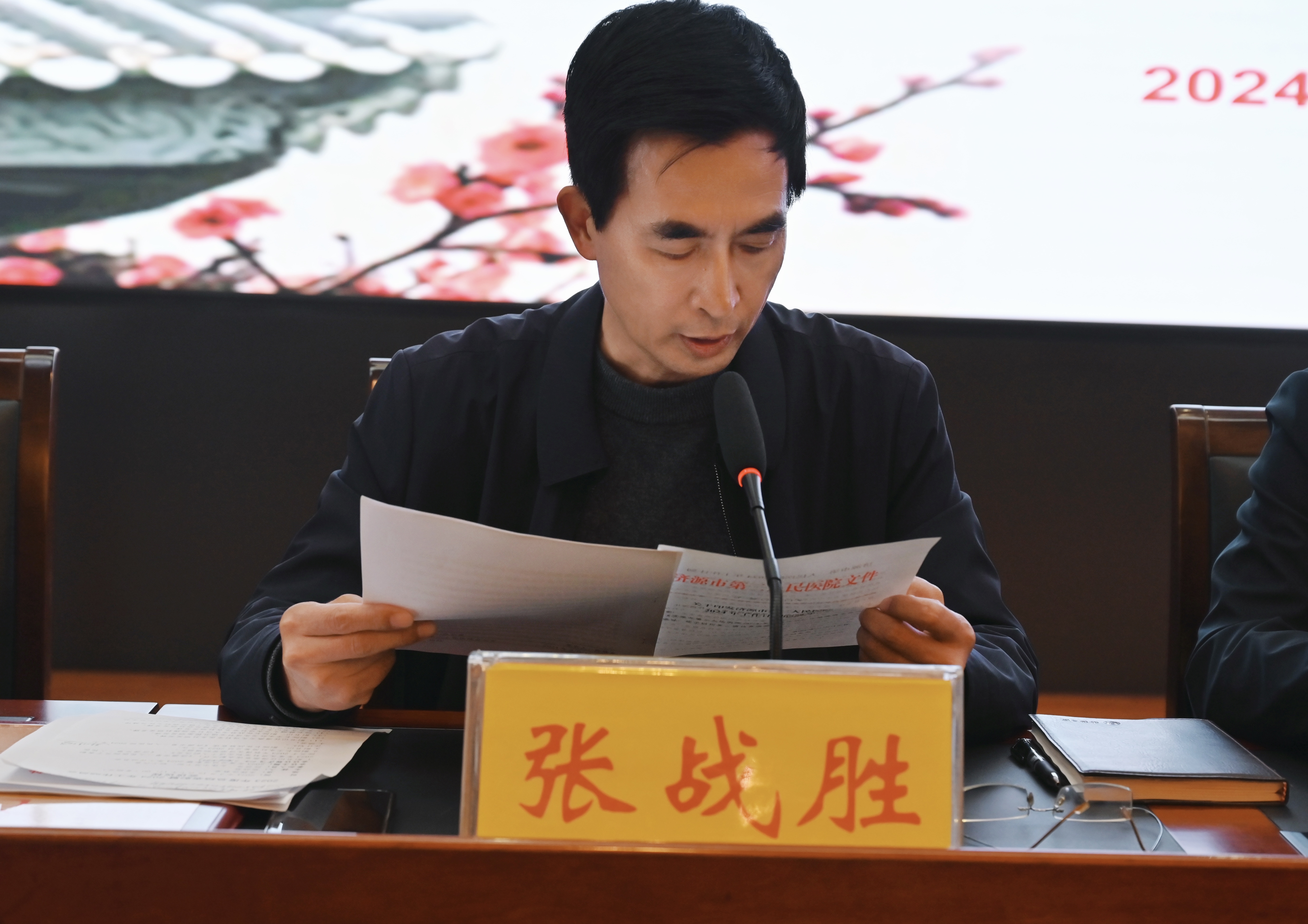 副书记、副院长张战胜宣读《济源市第二人民医院2024年工作计划》。2024年是我院落实提档升级工作,推进公立医院高质量发展的重要一年,我院将在示范区卫健委党组的正确领导下,灵活施策推动重点工作再深化;以医药护技助推综合实力再提升;聚焦提档升级推动学科建设再提速;落实全面从严治党推动红色引擎再升级。