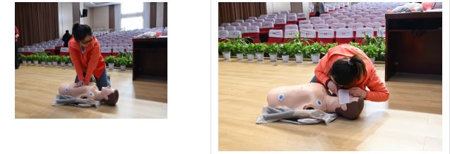 “手臂绷直,按压时手不能弯曲……”实操过程进行了规范和指导,使大家更直观地感受和掌握急救要领、了解操作方法及注意事项。教师们对胸外按压、人工呼吸等各个环节的细节反复操作练习,确保动作规范,通过理论讲授、现场演练、实践操作,达到了培训的预期目的和效果。