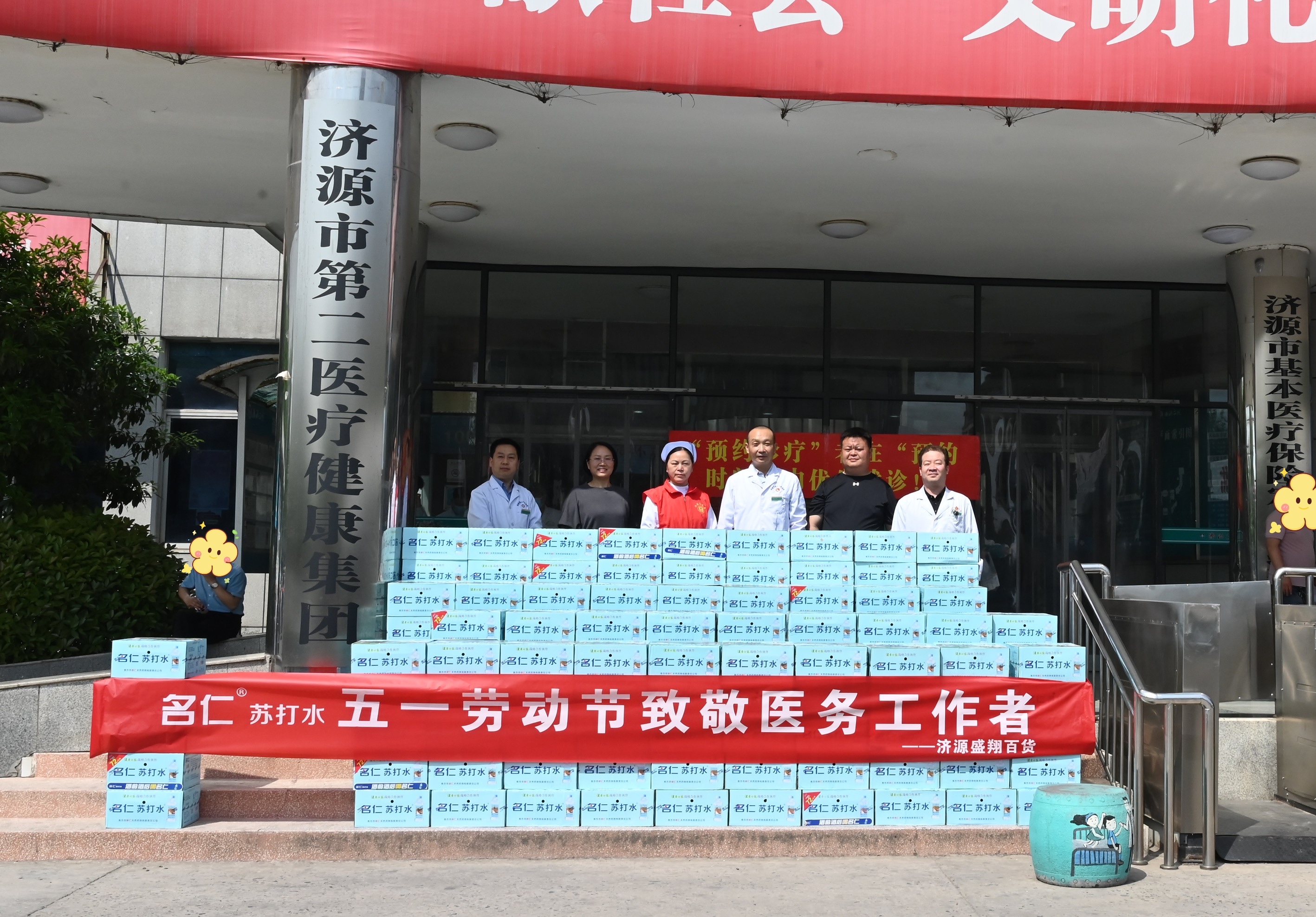 4月18日上午,济源二院收到了来自济源盛翔百货李慧的一份暖心礼物——200箱“名仁牌苏打水”。值此五一劳动节到来之际,表达对医务人员的敬意和关心。这份礼物不仅为医务工作者们带来了清爽与舒适,更彰显了他们对于医疗事业的关心与支持,院工会主席李永军代表医院接受了捐赠,并对此表示衷心的感谢。
