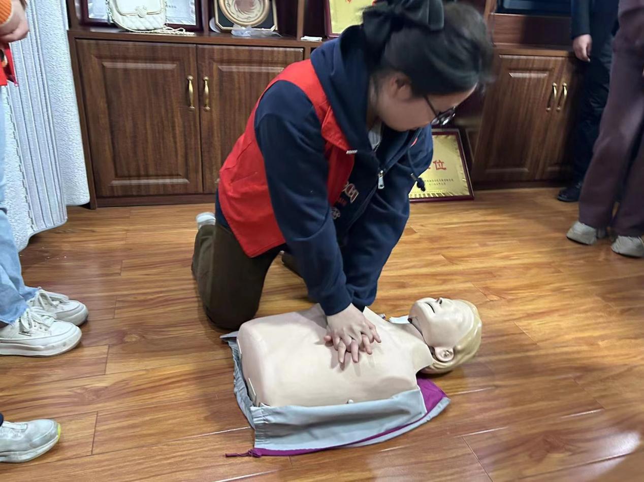 我院志愿者从心肺复苏术、中暑急救、溺水急救、海姆立克法等等到创伤救护的止血、包扎等详细讲解急救知识和要领。在普及急救知识,解答师生们对急救疑惑的同时,我们还设置实际操作环节,在预设的急救情景中模拟演练,让大家亲身体验急救的整个过程,手把手进行现场示教,大大提高了师生们对突发事件应急处理的能力。