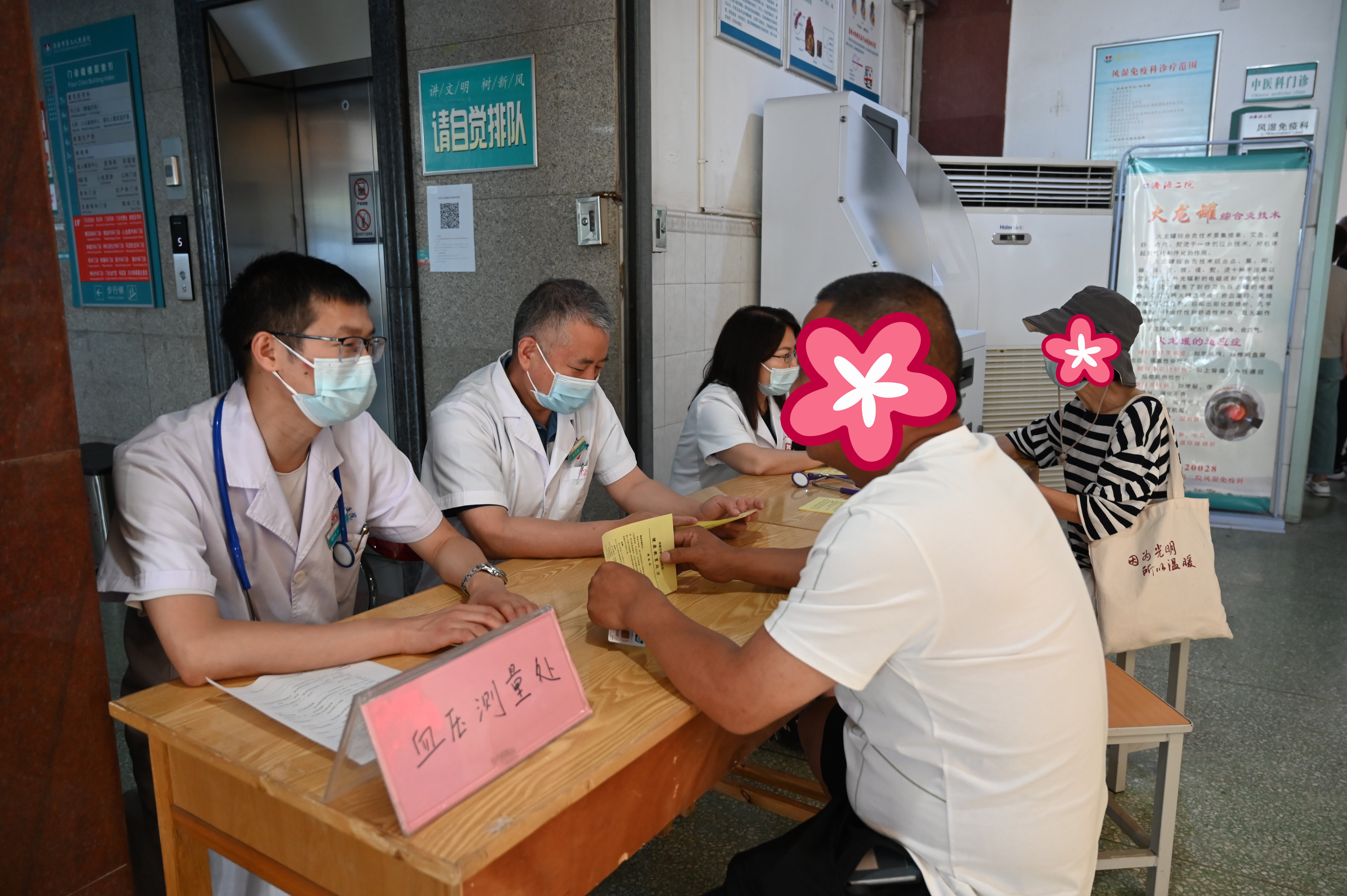 活动设在门诊大厅,我院在门诊大厅设立高血压宣传海报、义诊台为群众测量血压、为患者发放高血压防治手册、讲解高血压防治知识,并在大厅播放高血压防治宣传知识。