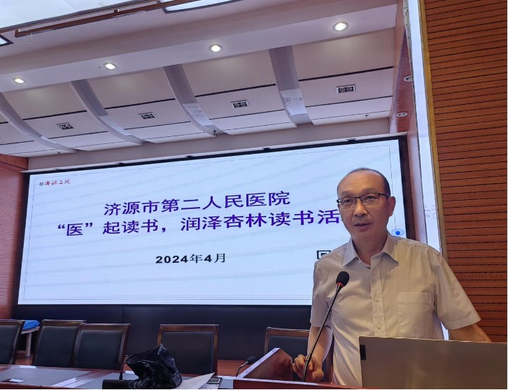 为营造良好的书香氛围,2024年4月23日下午,我院在多媒体教室开展了以“‘医’起读书,润泽杏林”为主题的读书分享系列活动,共有来自全院各个科室的35名青年职工参加此次活动。工会主席李永军、医政科科长王三学、审计科科长李春红、党建办主任翟大保、宣传科科长陈晨、工会委员李敏出席此次活动。