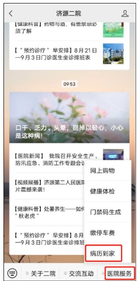 二、点击右下角“医院服务”,找到“病历到家”选项。
