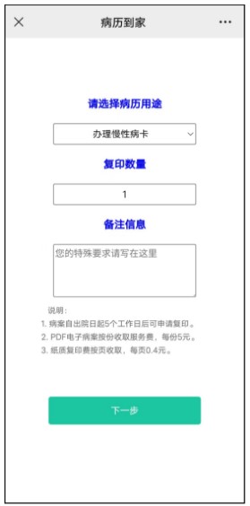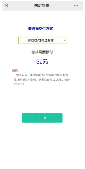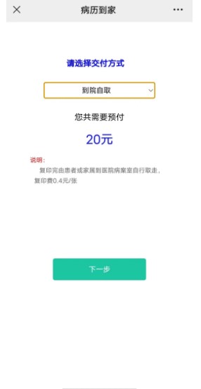 3.病历到家服务中,到院自取需预支付20元/份,多退少补。