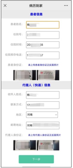 五、进行信息填写并上传患者本人有效身份证件正、反两面。