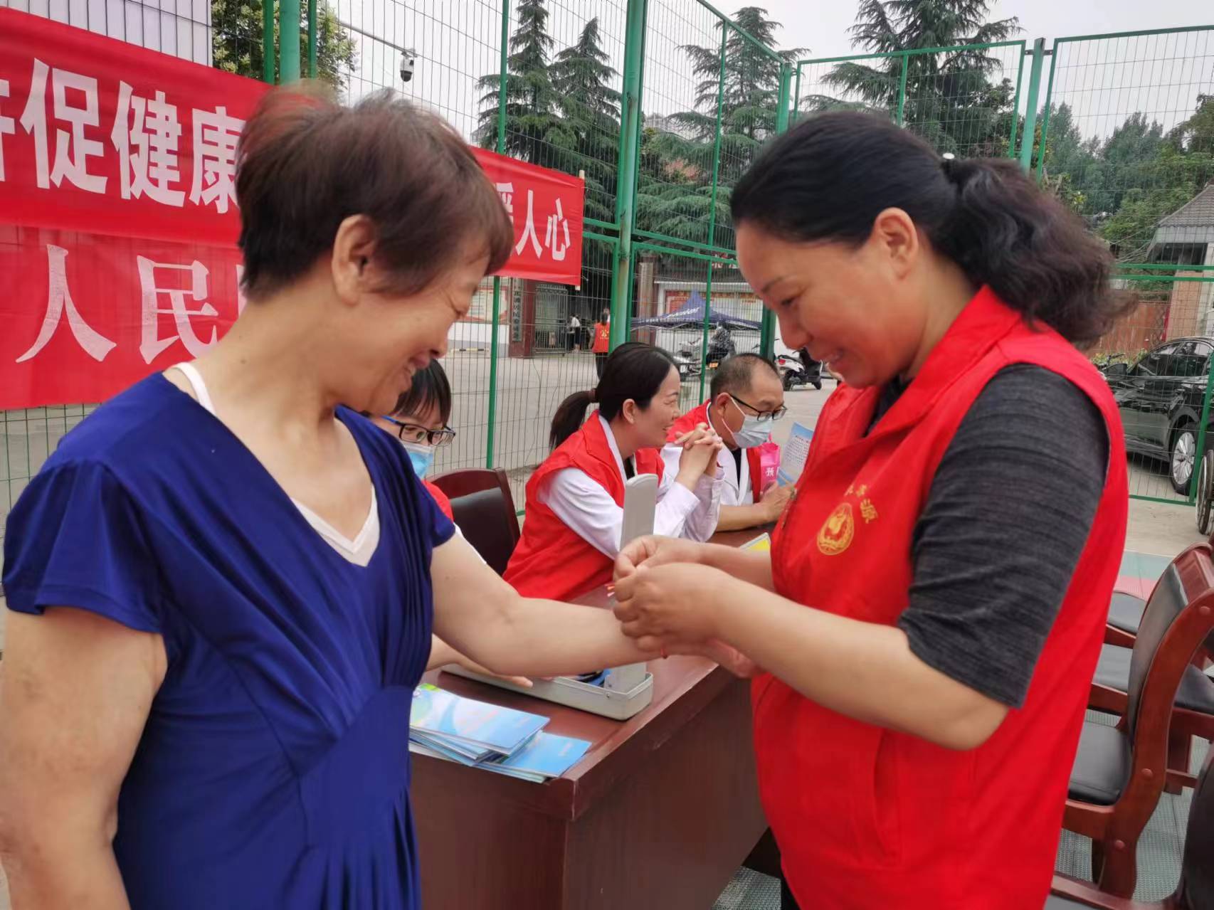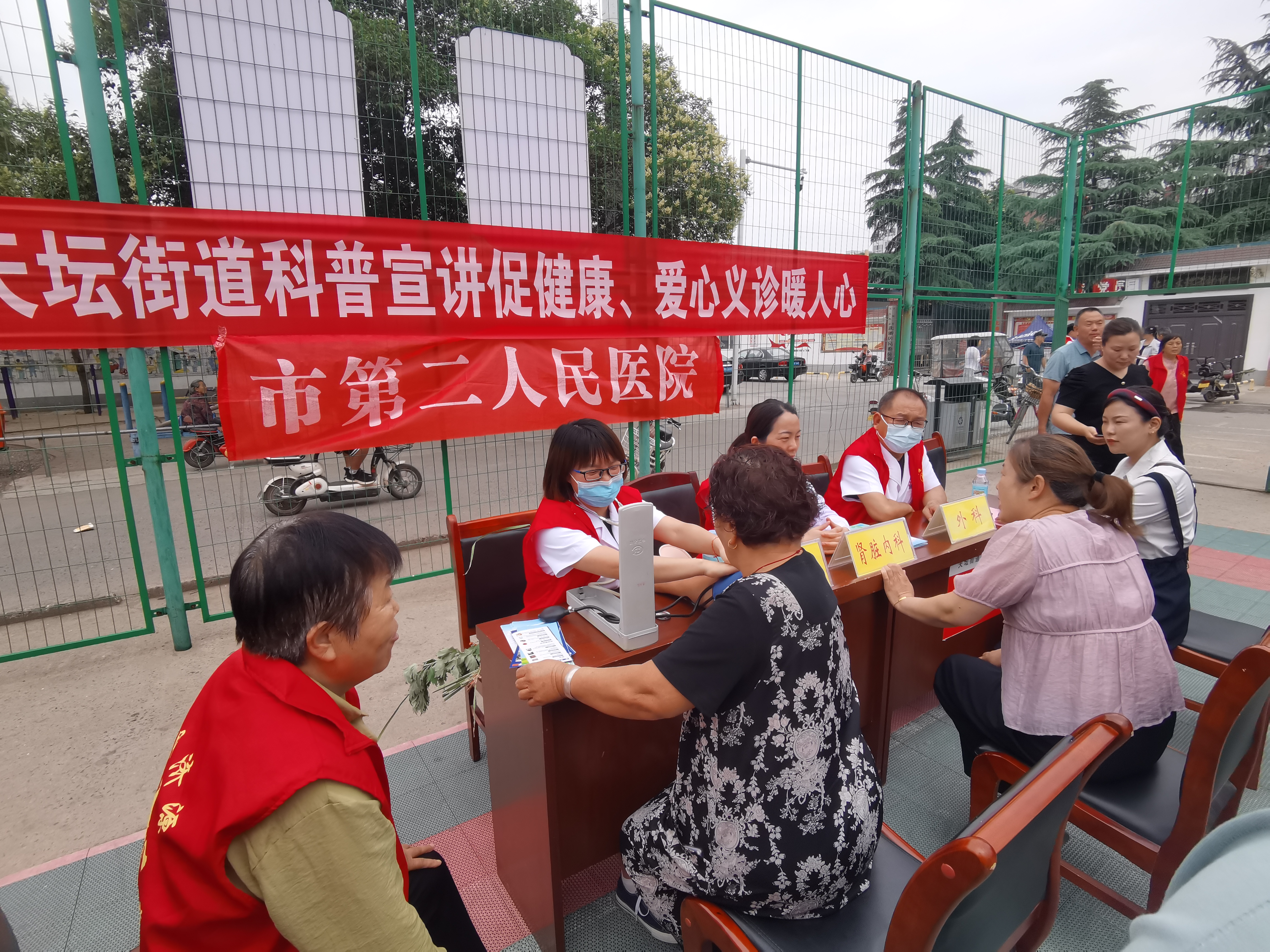 市二院的医生们在义诊台前忙碌着。群众们看到有医生在,纷纷上前去询问自己的身体状况,有的是平时有些腰腿疼,孩子们忙没空去医院,有的是平时没量过血压,顺便量一下,有的是有慢性病,咨询一下用药。医生们耐心接待,一个个回答群众的问题,同时有针对性地为大家讲解健康知识。