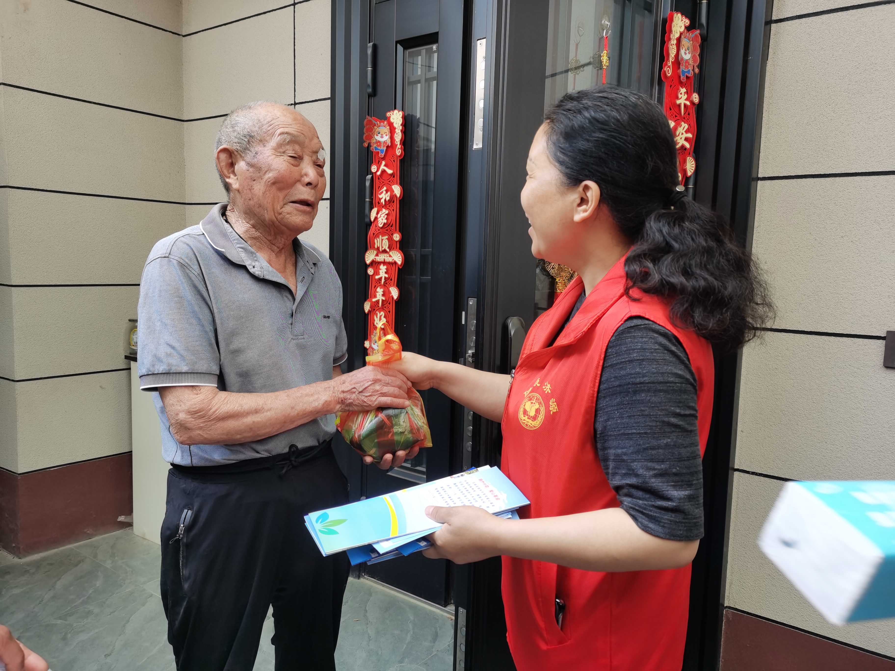 经过大家的努力,一个个香甜的粽子陆续出炉。志愿者们把它们装袋,准备给村里的高龄老人送去。年过九旬的大娘看到来送粽子和艾草的志愿者,感到非常感动。“感谢你们来看我,我这么多年都没收到这么有心的粽子,谢谢你们!”