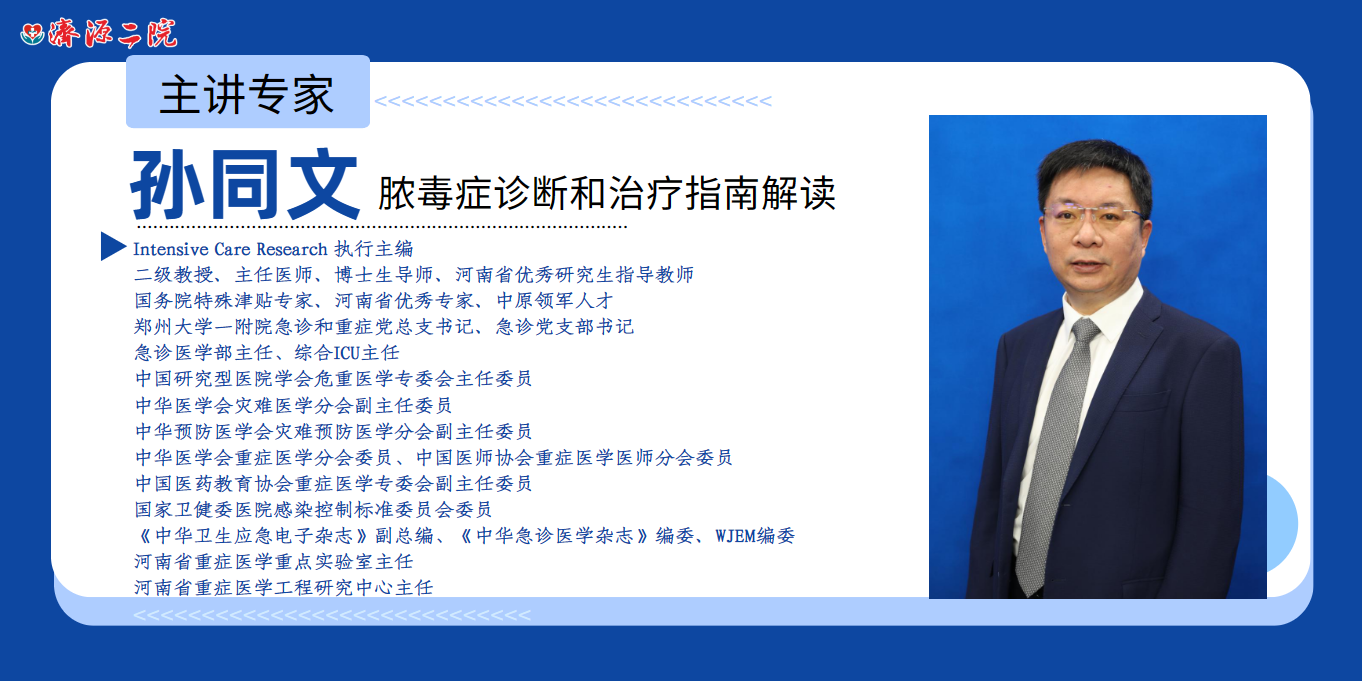 由Intensive Care Research执行主编,二级教授、主任医师、博士生导师、河南省优秀研究生指导教师,郑大一附院急诊和重症党总支书记、急诊党支部书记,中华医学会重症医学分会委员、中国医师协会重症医学医师分会委员孙同文主讲。