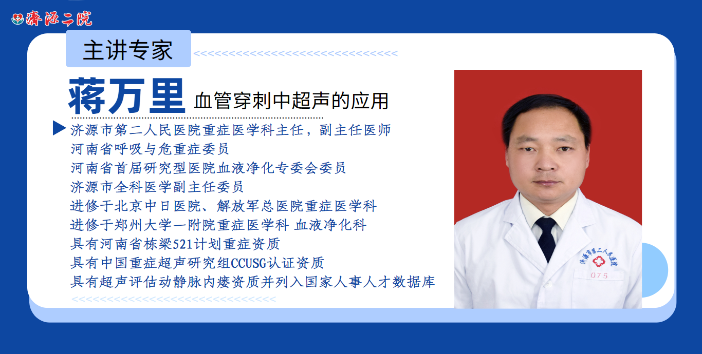 由济源市第二人民医院重症医学科主任,河南省呼吸与危重症委员,河南省首届研究型医院血液净化专委会委员蒋万里主讲。