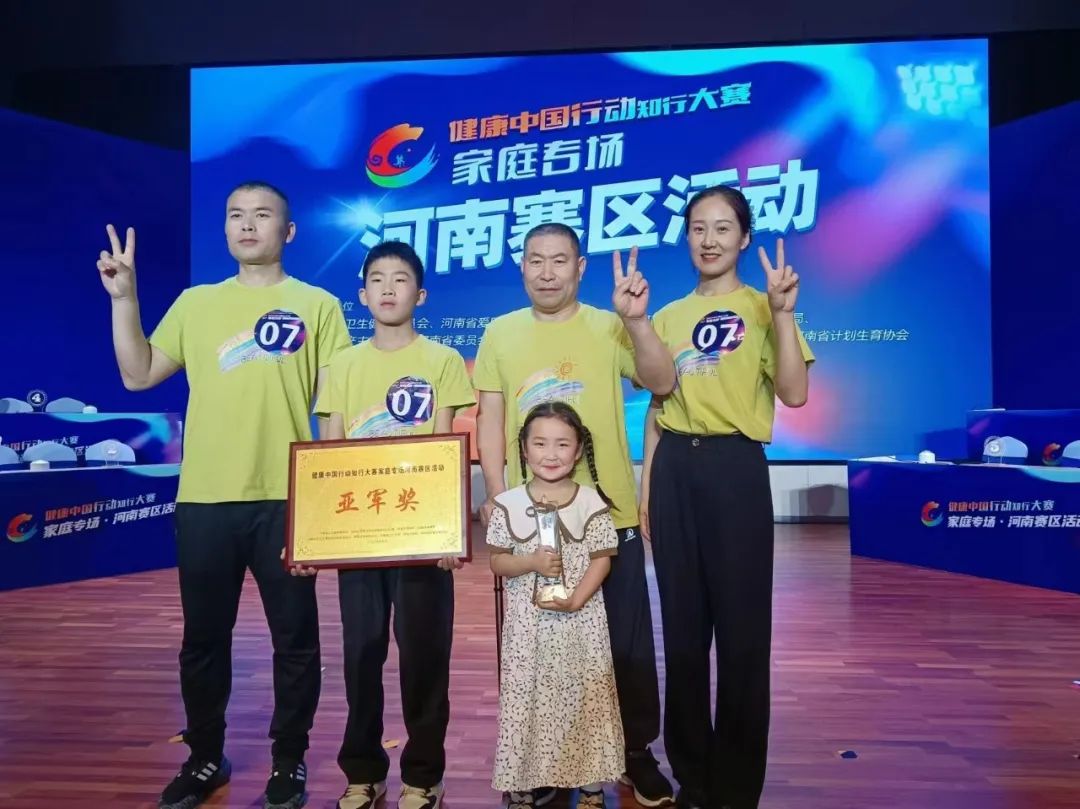 比赛从健康知识素养比拼、健康知识竞答、健康活力展现、健康科普竞演、健康技能展示、健康家风演讲等方面进行,通过激烈的层层选拔,最终,来自济源二院手术室的护士张欢带领其家庭战队(张欢与其丈夫、儿子、父亲组成)过五关斩六将,在河南省健康中国行动知行大赛总决赛中脱颖而出,荣获亚军。