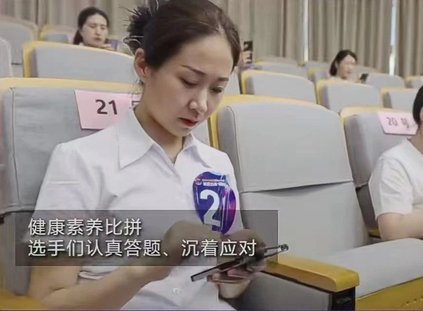 张欢,济源二院手术室护士,主管护师,于2011年3月入职我院,至今已13年,经验丰富仍朝气蓬勃。她说:“这是我参加过的众多比赛中最激烈的一次,项目最多、时间最紧、最具挑战性,这是一次集健康知识储备、抢答反应速度、各项体能较量、急救技能展示、演讲表演能力于一体的综合能力大比拼。”
