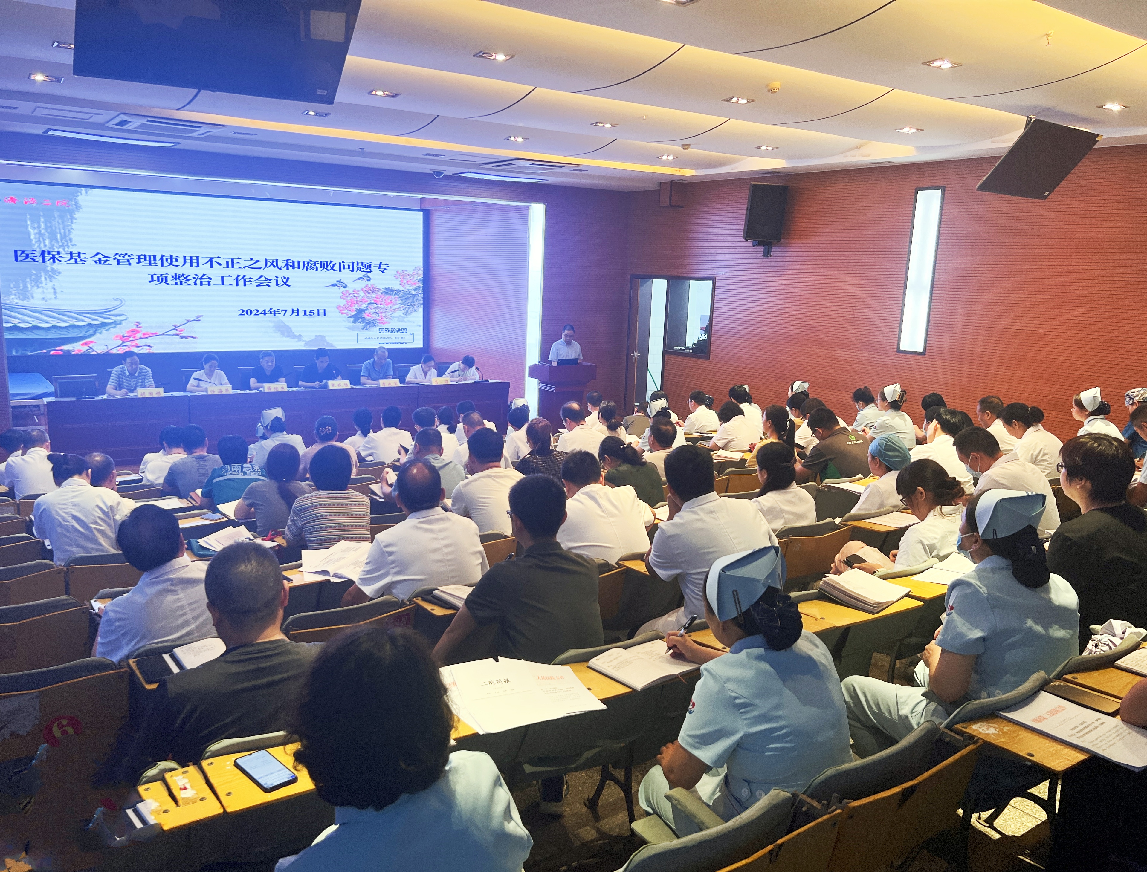 为推进医保基金管理使用不正之风集中整治工作,教育引导全院干部、职工受警醒,明底线,知敬畏,规范医疗保障秩序,7月15日,我院召开医保基金管理使用不正之风和腐败问题专项整治工作会议,党员干部近百人参加会议。