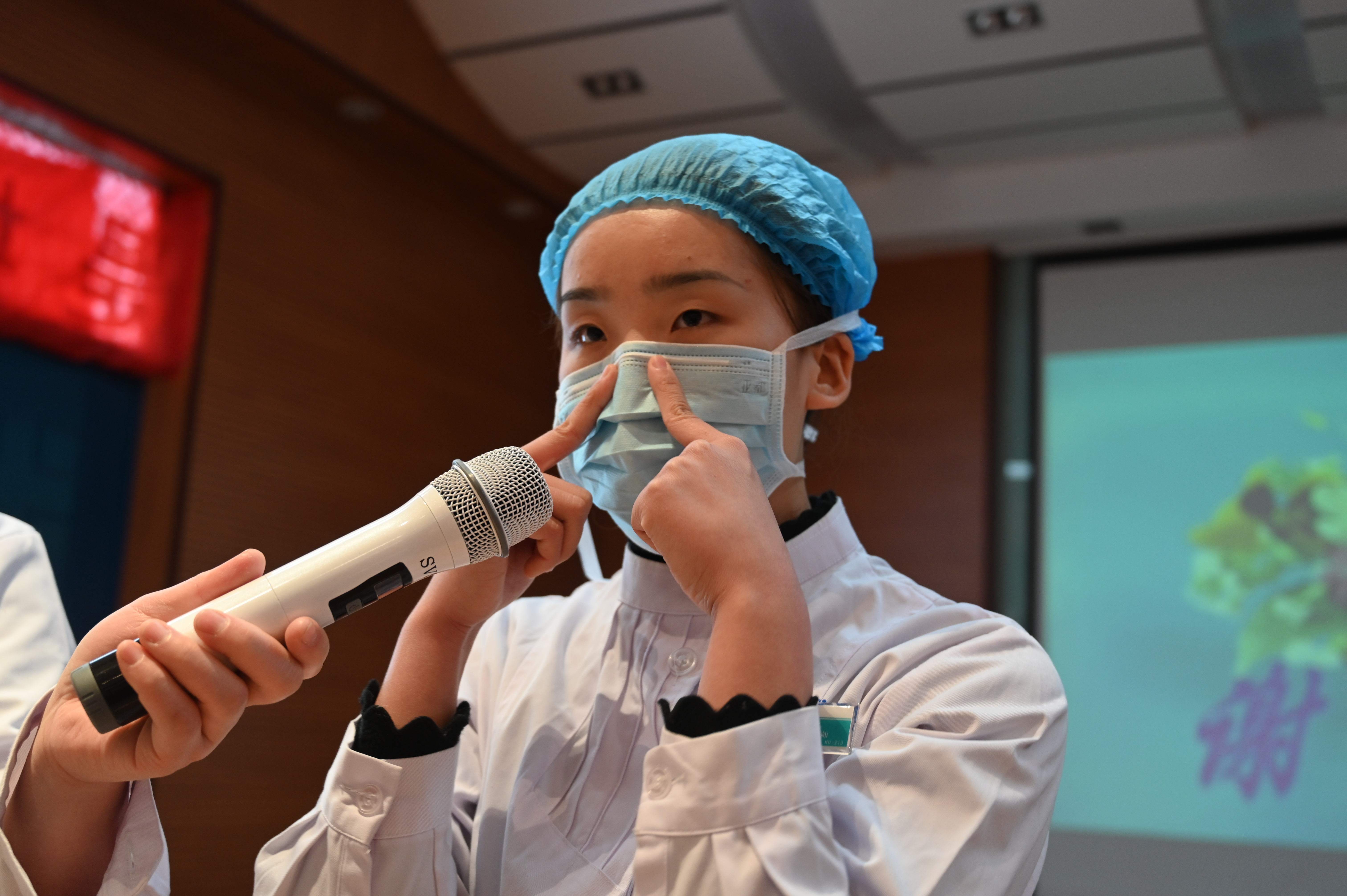 院感科科长郑瑞霞对院感防控和医务人员个人防护要求进行详细介绍。同时,手术室护士商亚辉对七步洗手法、戴手套法、隔离衣穿脱法进行现场演示。