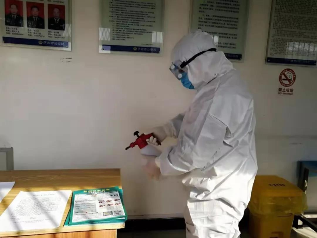 任海燕要求全院职工都要重视消毒工作,尤其是预检分诊、发热门诊、急诊科、呼吸科等重点部门。发热门诊是接触疫情最为严重的科室,每天穿着防护服、戴着双层口罩,护目镜里常常被热哈气糊住,轮班医生孙森淼最多每天接触三四十名发热人员,他面临的危险与挑战可想而知。每日上班前、下班后,都会对发热门诊的各个角落进行认真仔细的消毒,这不仅是完成医院的要求,更是对生命的负责。每一位医生心里都清楚,只有保护好自己,才能救治更多的人。