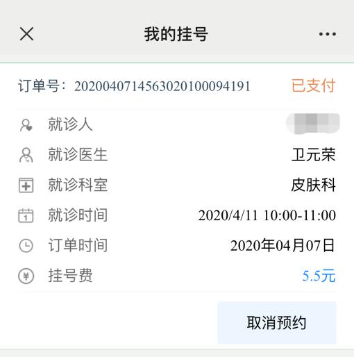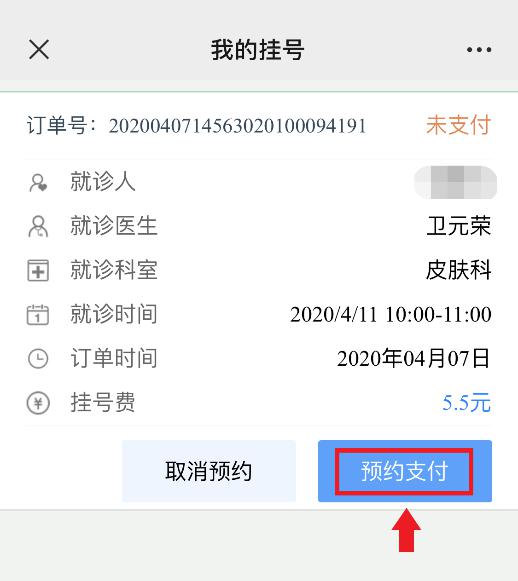 3.当日挂号、预约挂号:确认支付完成,即为预约成功。