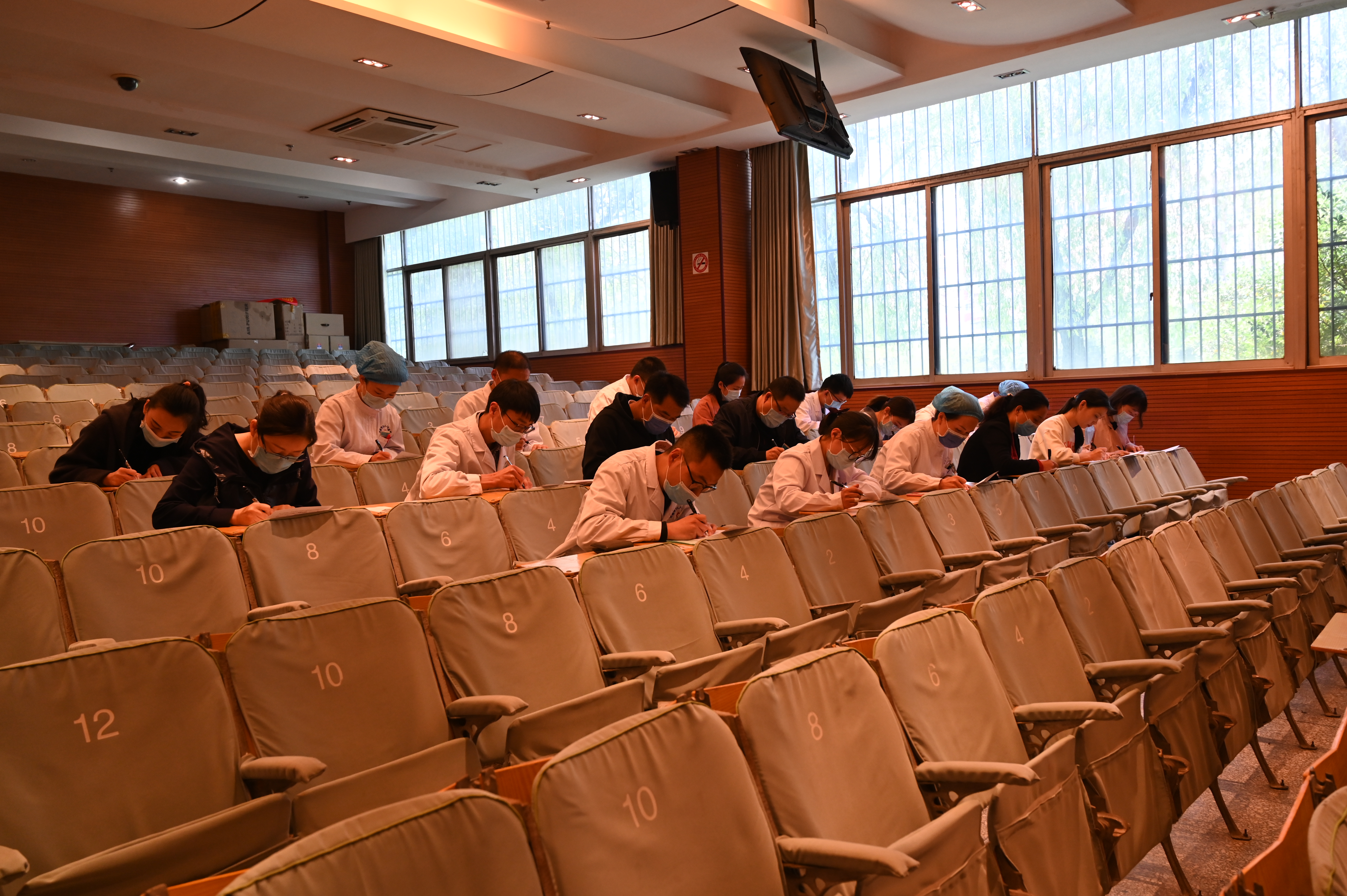 除此之外,检查组还在多媒体教室对我院20名工作人员进行知识测验和问卷调查,以检验医院干部职工文明创建理论知识学习成效。