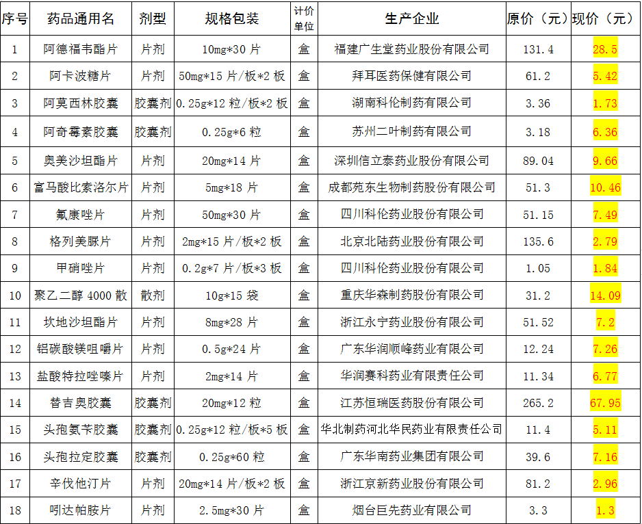 那么,降价药品有哪些呢?请看下表: