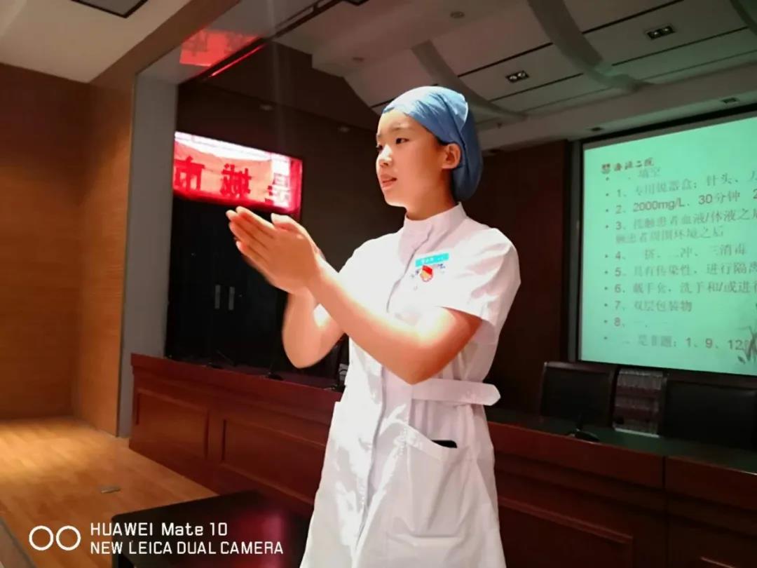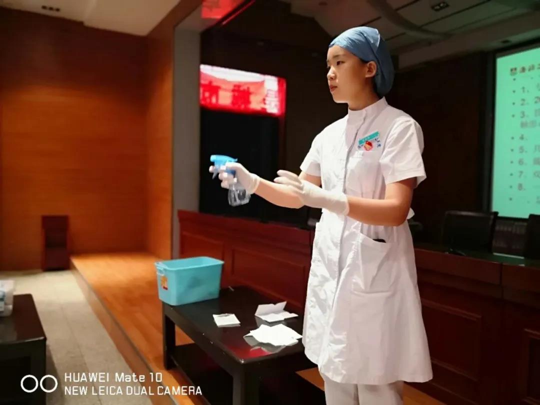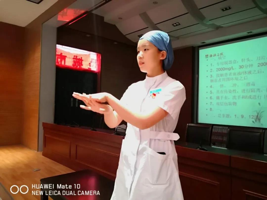 邀请手术室护士商亚辉对“七步洗手法”以及职业暴露的处理流程进行了现场演练。