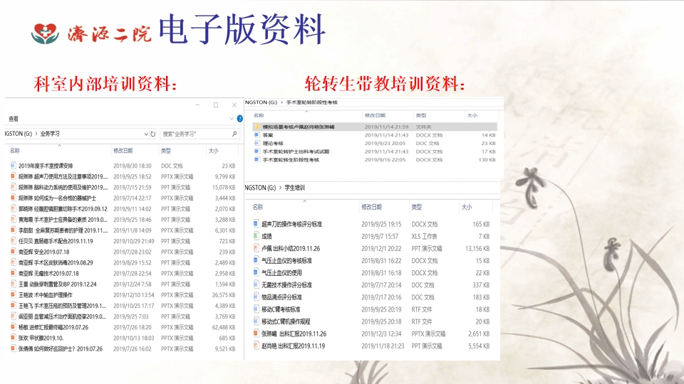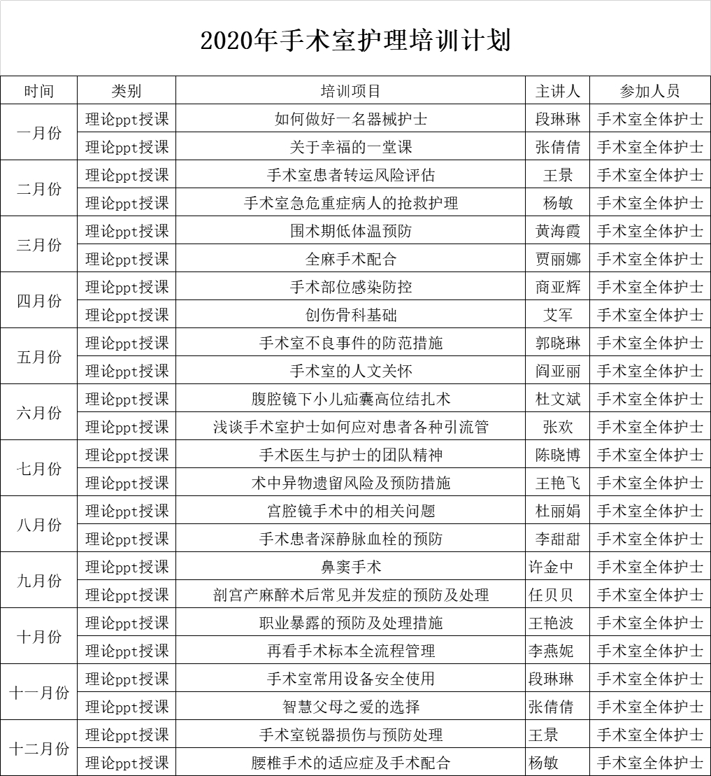 手术室是医院实施手术和抢救病人的重要科室,只有不断学习才能跟得上医学的发展。了解前沿技术,细节化手术流程,都成了我们学习的重要内容。所以在2018年底,又组建业务学习小组。作为组长,统筹安排收集科室人员PPT,直至目前,共课件50余个,均在计划内完成授课。2019年,随着医院新技术新业务的开展,为了使手术室人员更好的配合外科医生,我开始邀请外科医生进行授课。令我惊讶的是,竟然出乎意料的顺利,当我拨通每一个医生的电话,他们都是满口答应。许金中主任,李伟标医生,杜丽娟医生,陈晓博医生等等等等……并在随后给我发来精心制作的课件,我是那么那么的感动,所有辛苦变得不再重要,一切都那么值得。