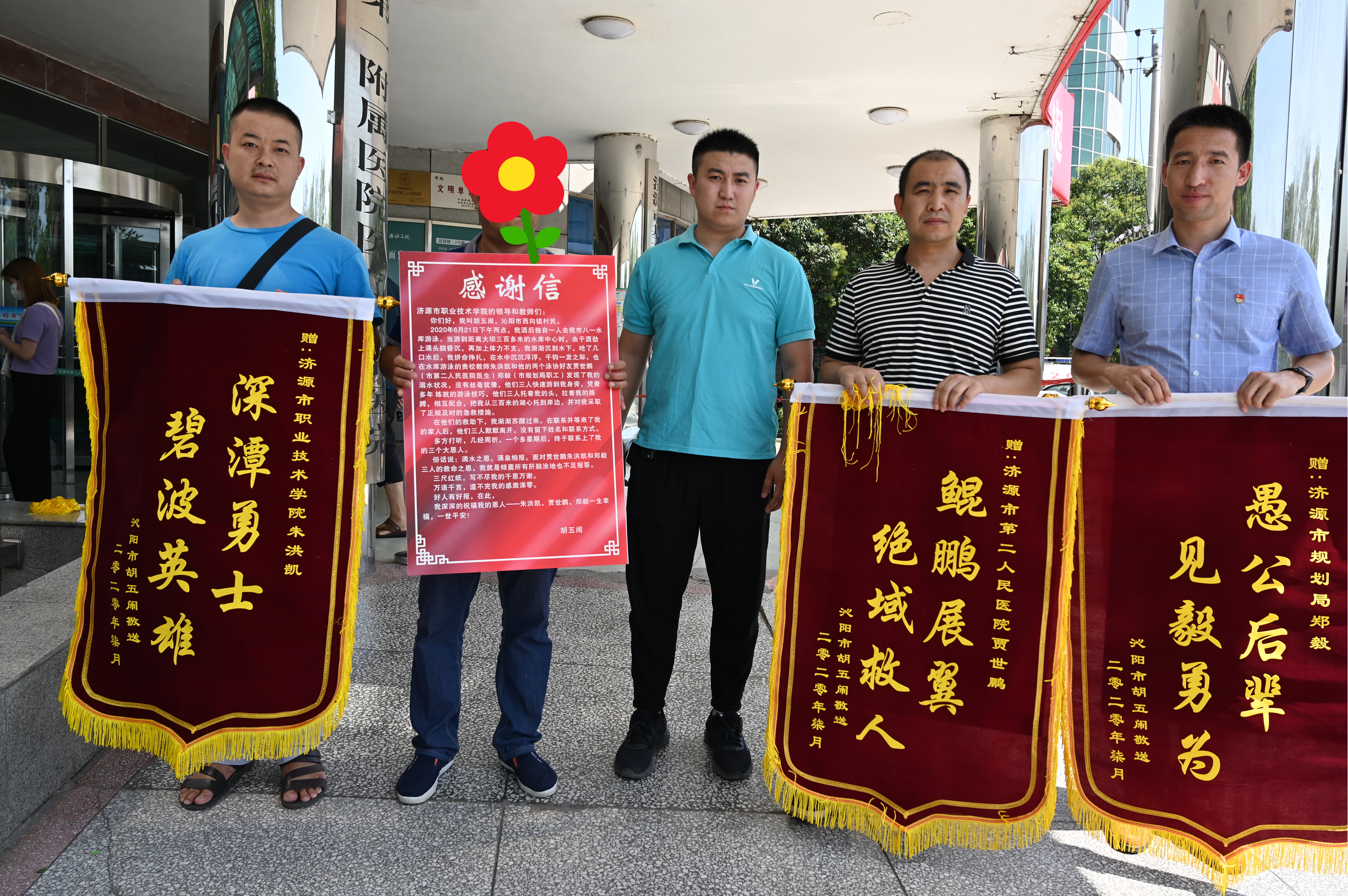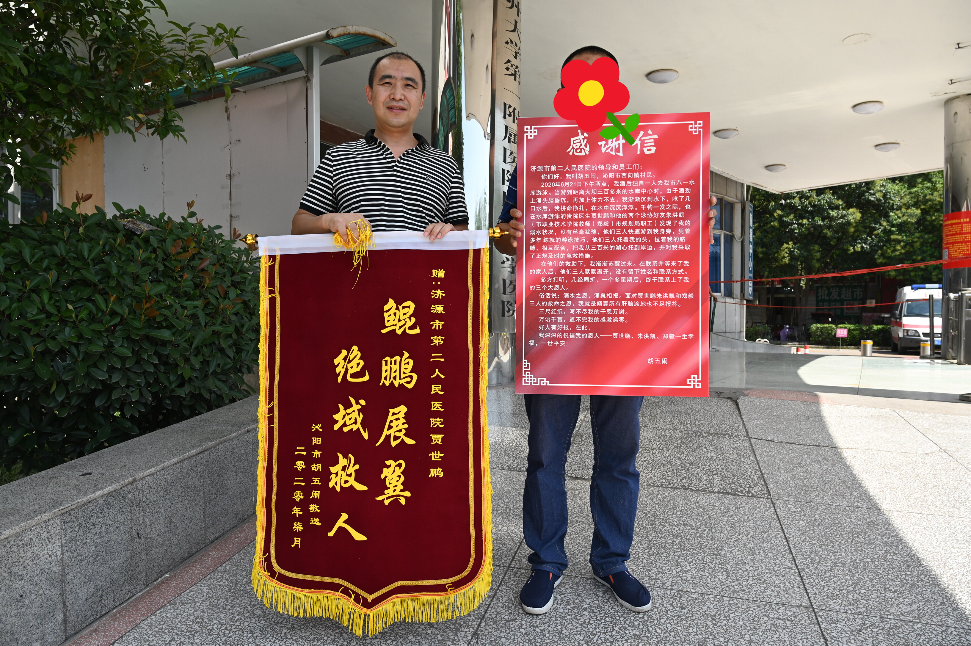 7月6日,胡五闹来到二院急诊科,送上了感谢信。鲲鹏展翼,绝域救人,实至名归。