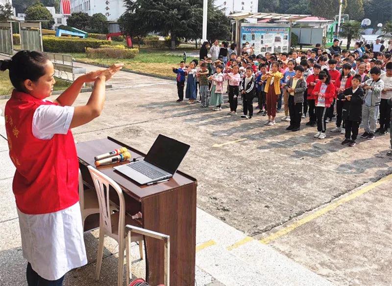 另一边,我们的护士长尚妍芳也没有闲着,来到下冶镇第一中心小学,走到孩子们中间,为孩子带来了疫情防控及健康知识,在场的孩子们听的非常认真,还跟着尚妍芳一起做起了七步洗手法。