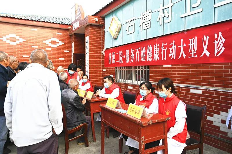 义诊的第一站来到下冶镇石槽村卫生室,咨询台呈一字型摆好,村民围在咨询台前。医护人员耐心地询问村民病史、测血压、做体格检查……从诊断疾病到健康咨询;从用药指导到体格检查;从合理饮食到增强体育锻炼,医护人员认真细致、忙中有序的为每一位村民诊疗、解答。针对病情复杂的村民,医护人员还提出指导性治疗建议,并叮嘱他们及时到医院做进一步检查,以免延误诊治。