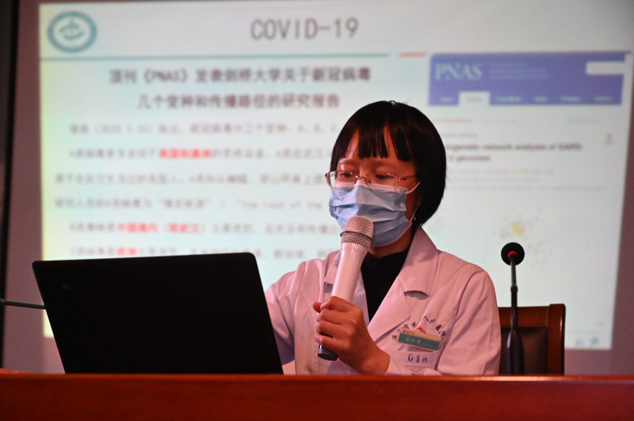 心内科副主任石小燕的培训内容为《新冠肺炎诊疗方案》(第八版),她不仅指出最新方案中的改动部分,还分享了自己在参加视频会议时学习的内容,结合真实病例图片,加深大家对新冠肺炎的认识。