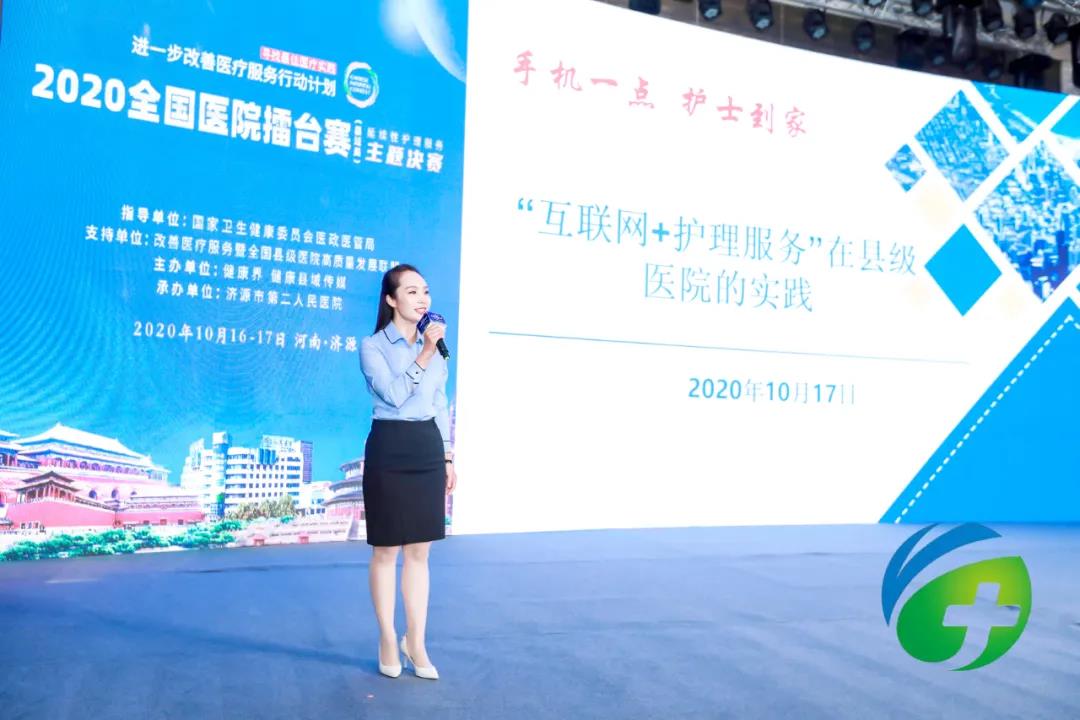 在2020年全国医院擂台赛(县域类)——延续性护理服务主题决赛的会场上,我院“护士到家”案列作为优秀案列在大会与大家分享。