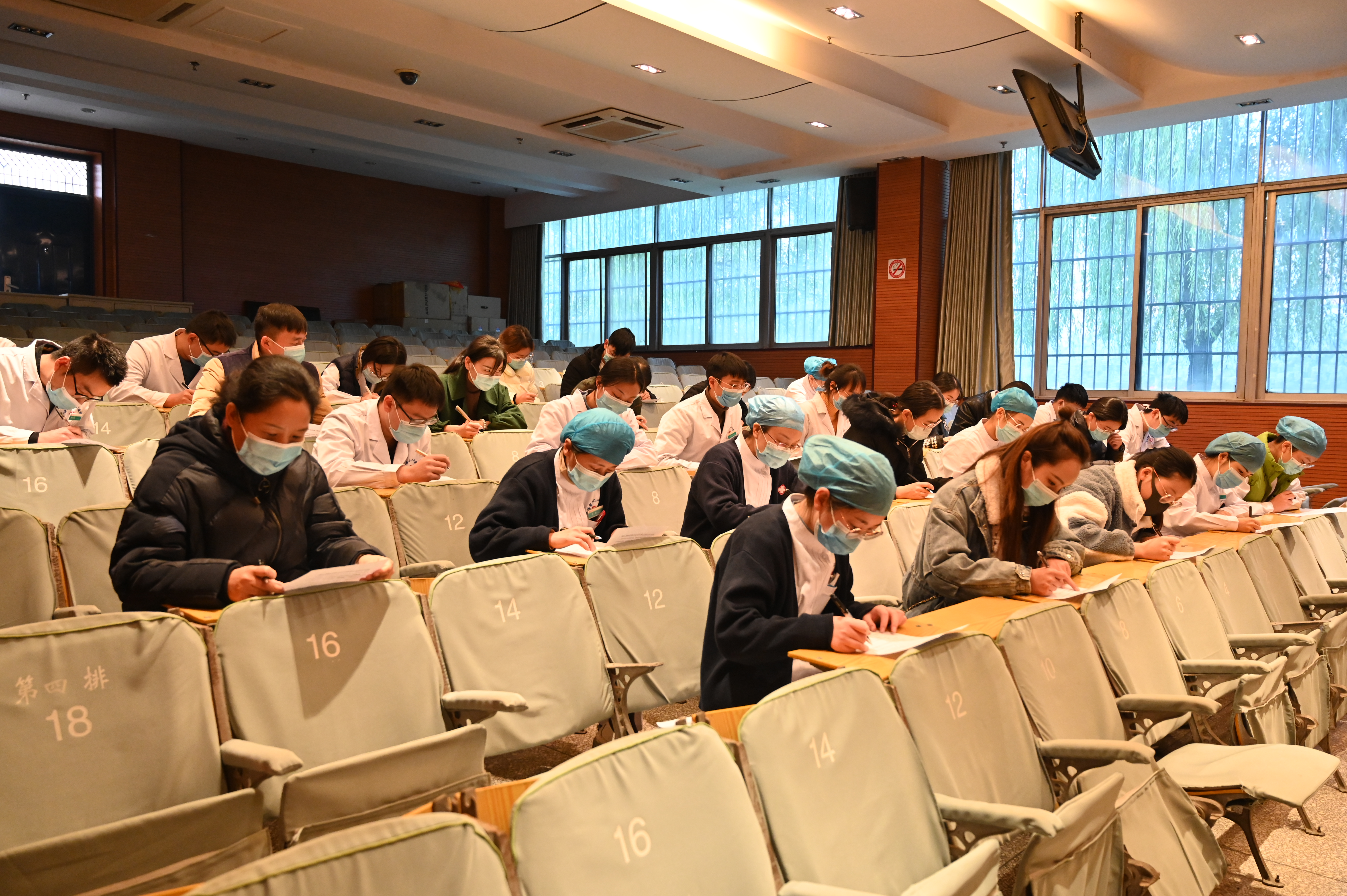 知识测验时,按照疫情防控及知识测评要求,全体人员佩戴口罩,间隔一人坐下,认真完成测评试题。该测验主要目的在于,从理论层面检验医院干部职工文明创建理论知识学习成效。