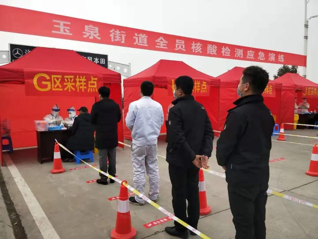近期,国内疫情出现“多点散发”状态,随着春节临近,传播风险增大。从各地新冠疫情突发后的防控经验来看,实施全员核酸检测,是快速查清传染源、遏制疫情扩散的关键措施。为进一步完善疫情防控应急预案,有效应对新冠肺炎疫情突发事件,玉泉街道组织开展了“全员核酸检测”应急演练。