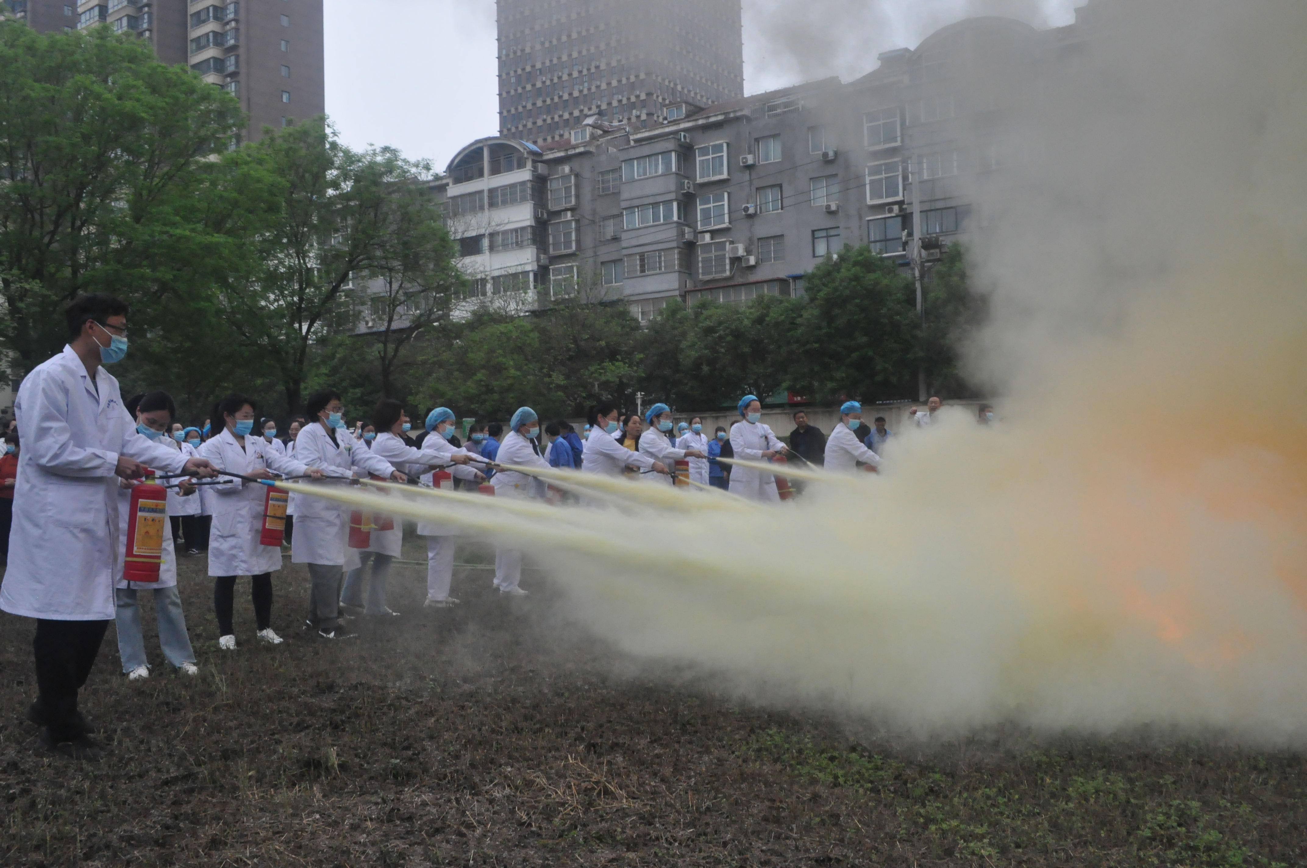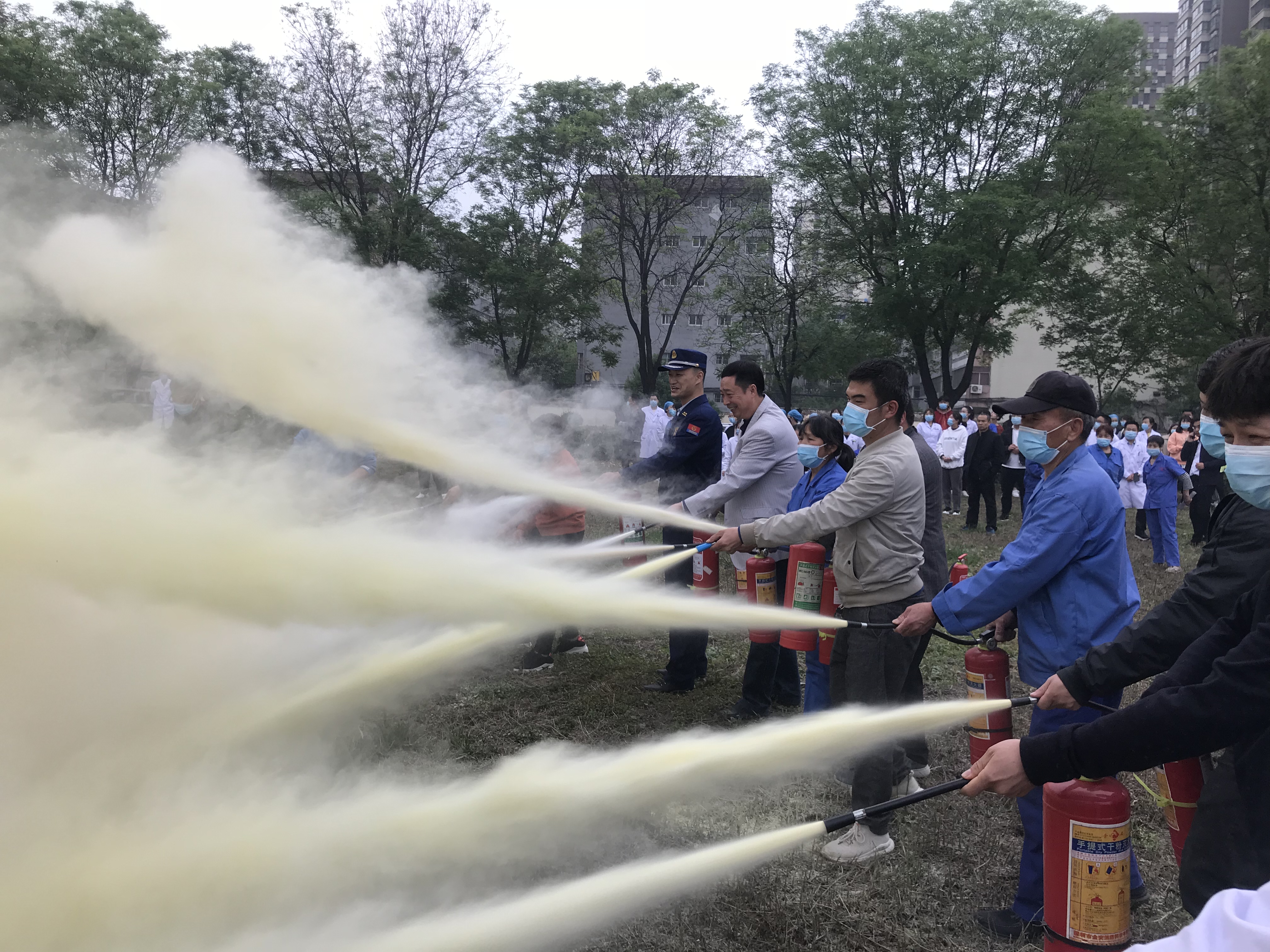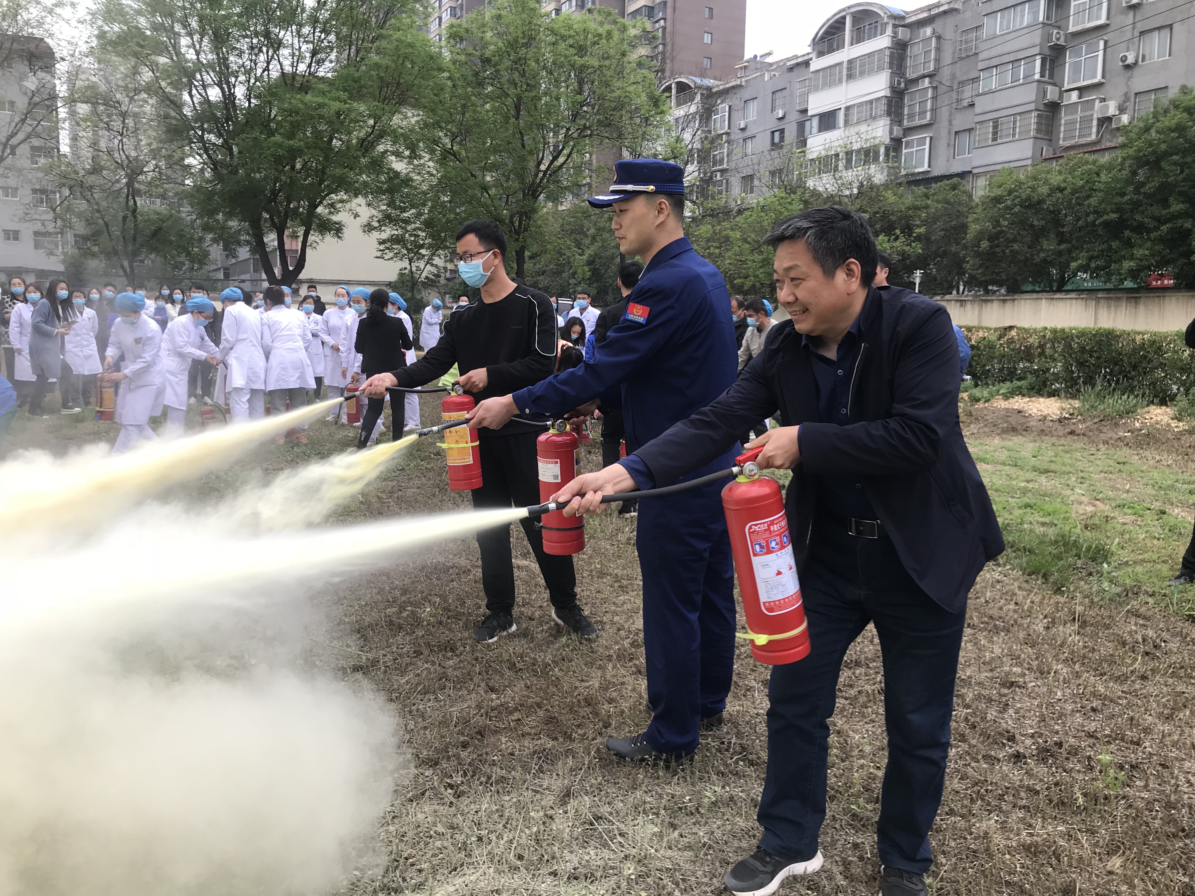 接下来,所有参加此次演练的人员逐一操作灭火器。面对熊熊大火,我院职工勇敢地拿起灭火器按照讲述的操作要领详细认真的进行灭火练习,人人做到听从指挥,临危不乱,动作到位,成功灭火。