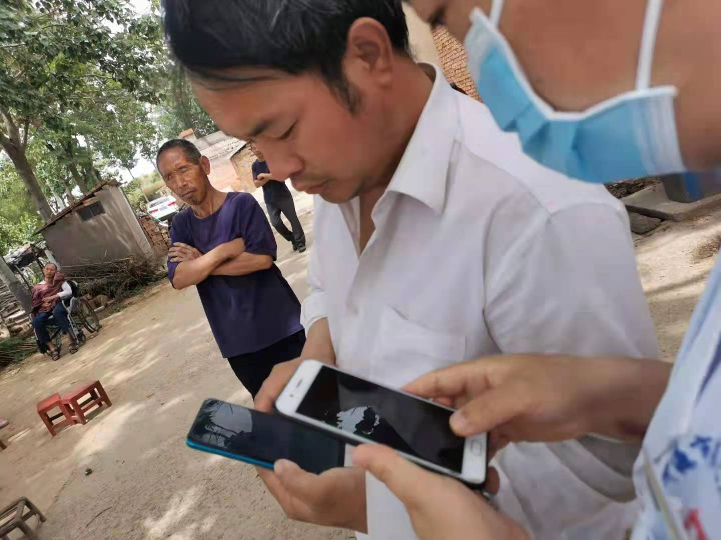 李大哥一家6口,仅弟弟一人有劳动力,我院医务科王三学面对此情此景,不由动容,拿起手机给李大哥弟弟微信转账200元。大峪卫生院医政科科长见状迅速掏出手机,拍下这动人一幕。