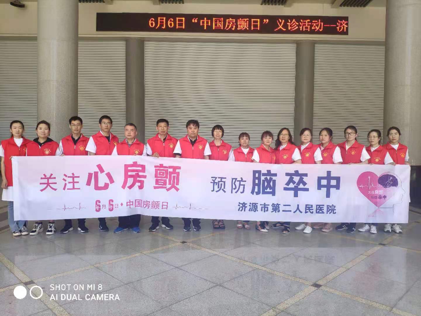炎炎夏日,2021年6月6日我们迎来了第9个中国房颤日,为提高人们对房颤的认识,普及房颤防治知识,远离卒中和心衰。上午济源市第二人民医院心内科及心导管室医护人员一行在薛瑞璐主任组织带领下,来到济源市柿槟新村举办主题为“关注房颤 预防卒中”的中国房颤日大型义诊活动。