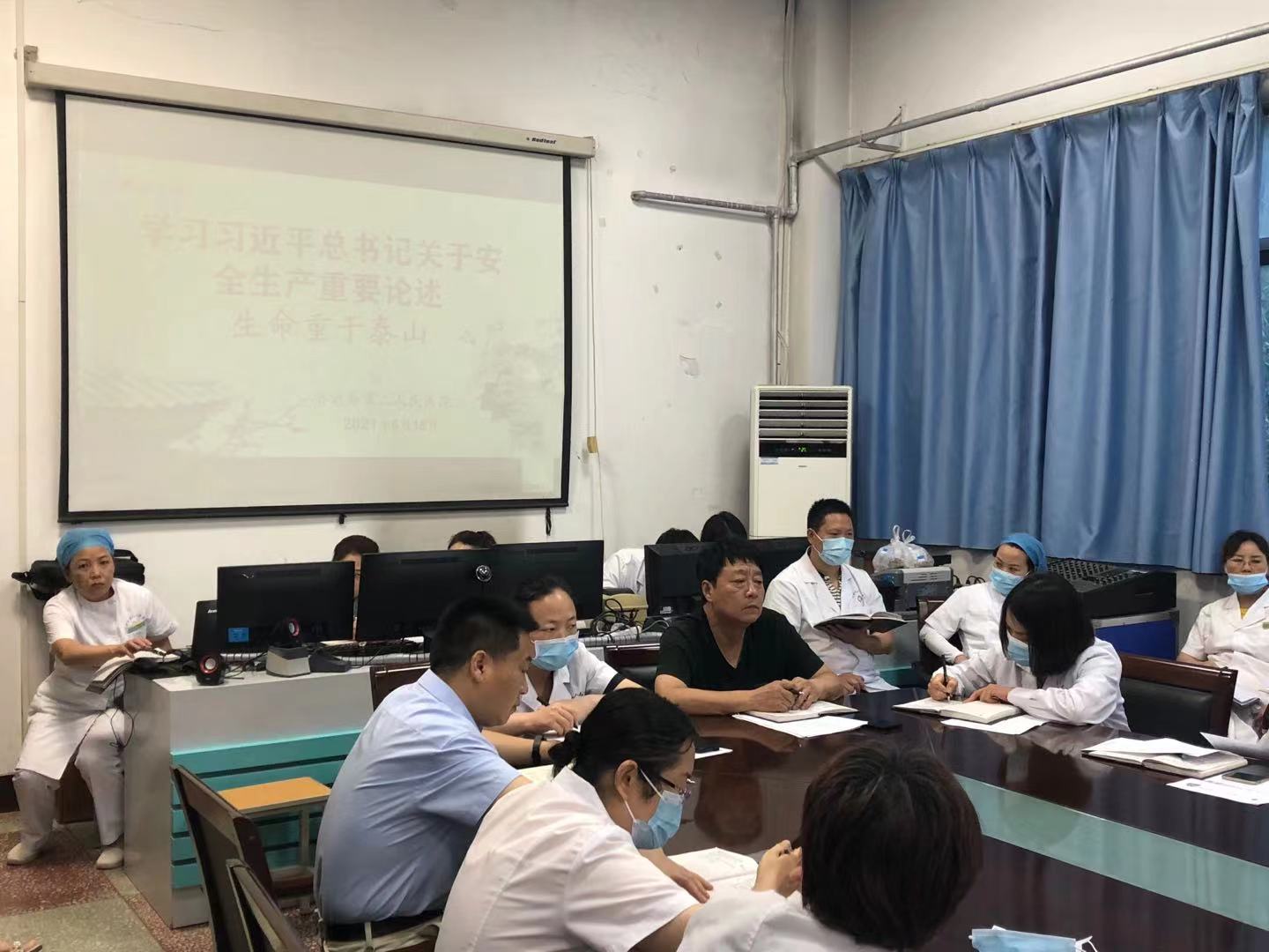 为认真学习贯彻习近平总书记、李克强总理关于湖北十堰市张湾区艳湖社区集贸市场燃气爆炸事故的重要指示批示精神,落实好省、市两级安全生产会议精神和安排部署,2021年6月15日,我院在二楼会议室召开专题会议,安排布置安全生产和消防相关工作,胡国栋主持会议。示范区卫健委副主任、党总支书记、院长薛继东就进一步做好安全生产和消防工作做了强调。