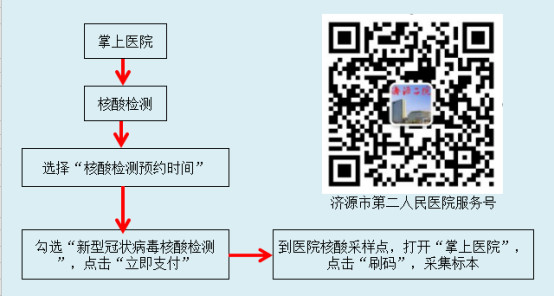 为进一步做好新冠肺炎疫情常态化防控工作,更好地满足广大群众对新冠肺炎核酸快速检测需求。近日,我院开通新冠肺炎核酸检测微信预约缴费服务。有需要核酸检测的患者无需挂号就诊,在微信公众号上搜索并关注“济源市第二人民医院”进行预约申请,完成缴费后可直接到医院核酸采样点进行采集。