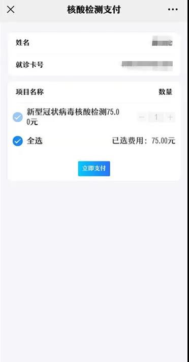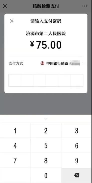 微信支付后,即完成线上预约缴费。预约检测者可持电子码到医院进行核酸采样。
