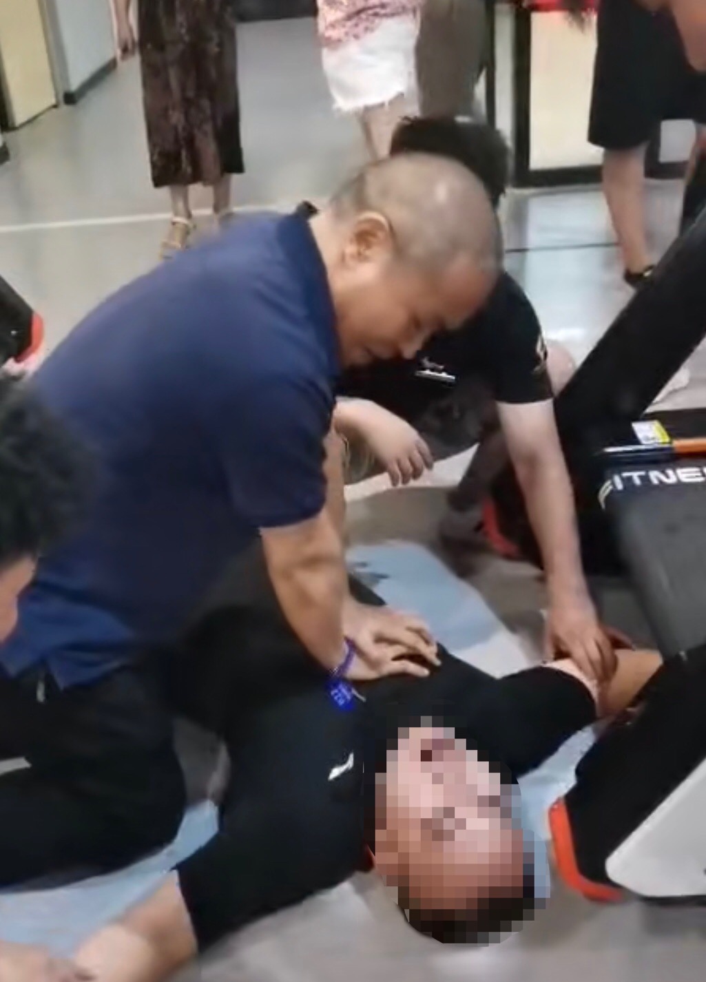 济源健身房内一小伙突然倒地,二院医生竟随即跪下