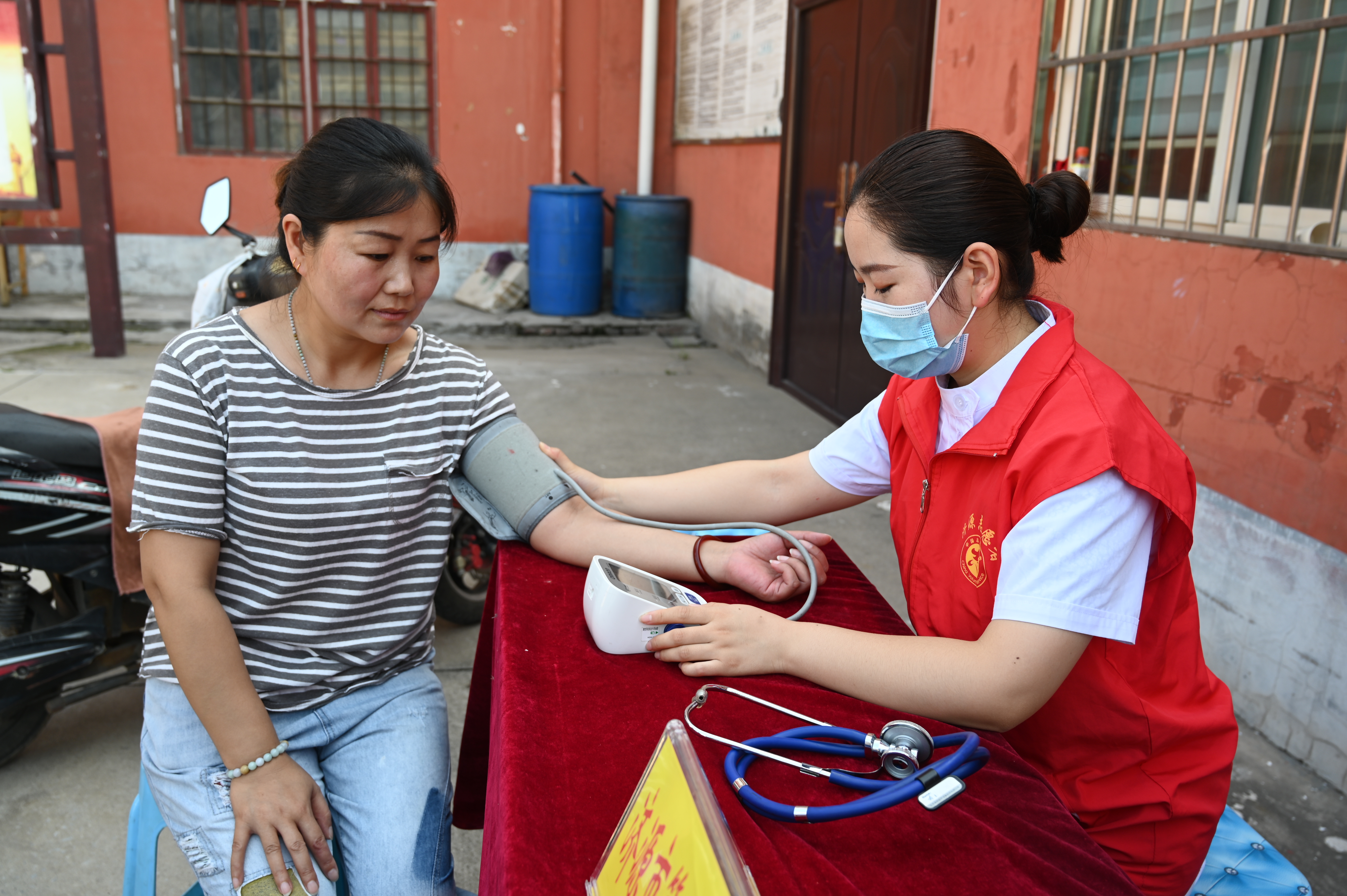 而护士们也在忙着为村民进行血压测量等。遇到村民血压高的,她们便耐心询问日常血压情况。同时叮嘱有高血压病的村民一定要按时吃药,控制好血压值。