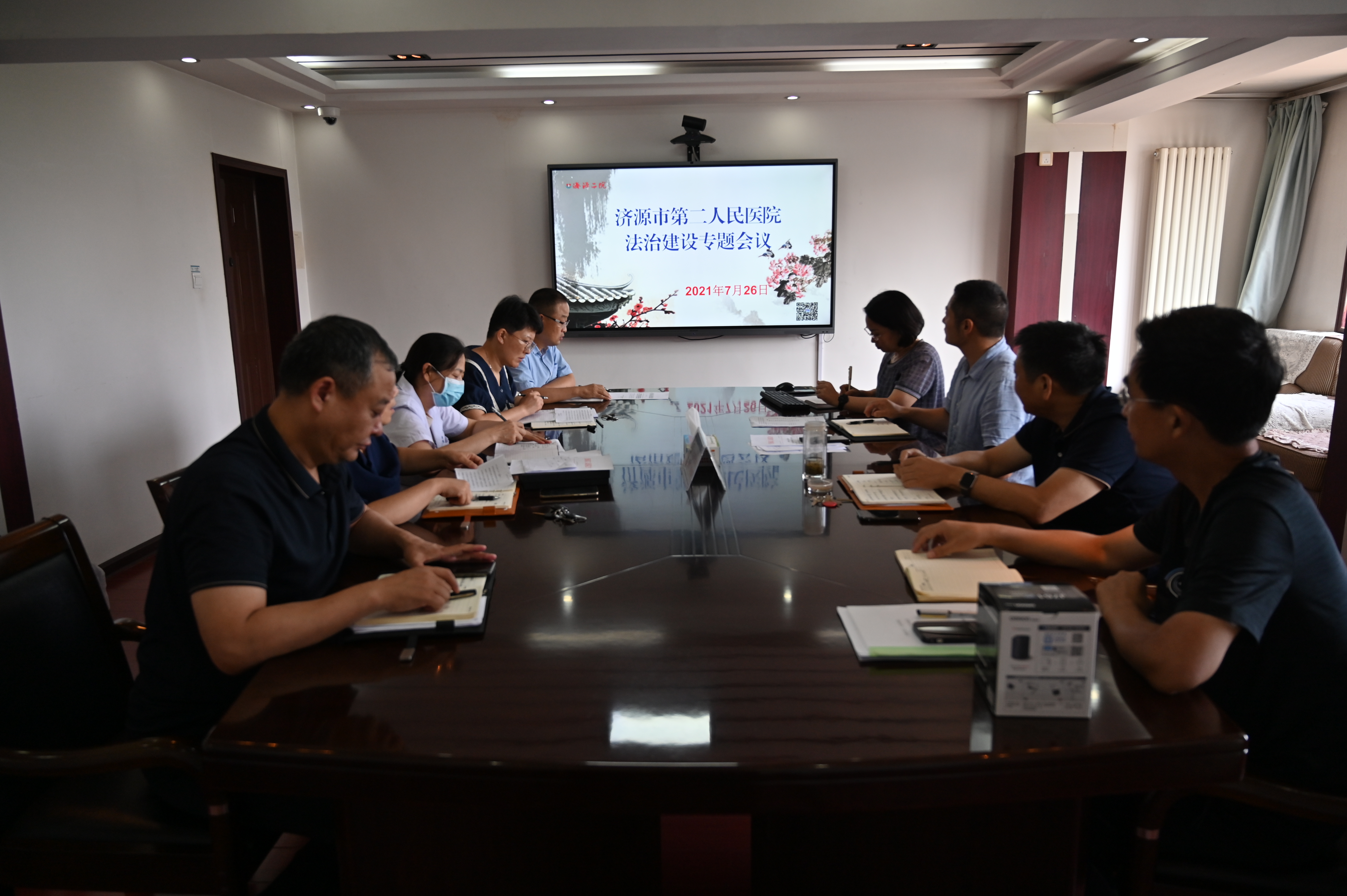 为研究部署我院法治建设工作,提升全院干部职工依法履职能力,我院于7月27日上午在四楼会议室召开“济源市第二人民医院法治建设专题会议”。济源示范区卫健委副主任、医院党总支书记、院长薛继东,党总支副书记、副院长张战胜,副院长王永红,党总支副书记任海燕等班子成员以及相关科室负责人参加会议。