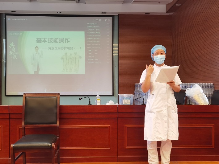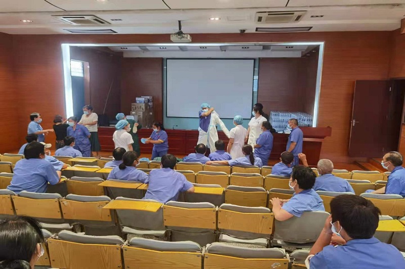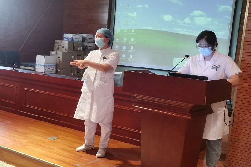 培训中按照“指南”要求——新型冠状病毒肺炎常态化疫情防控环境物体表面消毒方法推荐方案,明确了床单元、地面、公共区域座椅、电梯等医院环境物体表面的清洁与消毒及频次。再次规范医院环境的分区、拖布、抹布的使用方法。与保洁人员进行了“七部洗手法”、“七部揉搓法”的互动学习。并现场演示了口罩、帽子、手套、防护服及隔离衣的正确穿戴和脱卸方法。