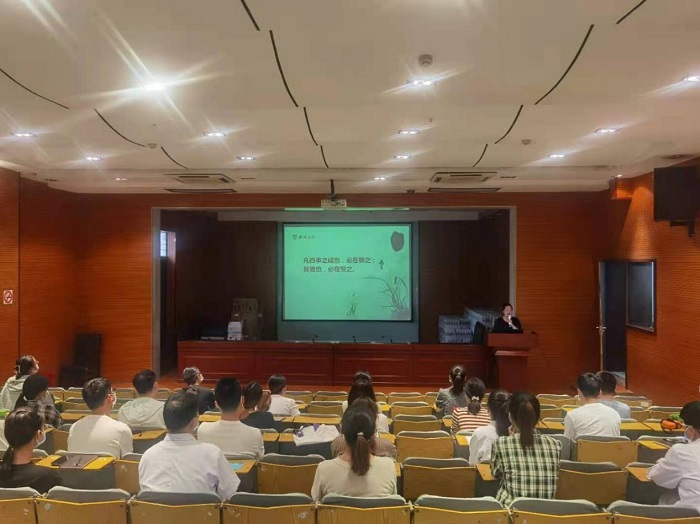 为进一步发扬中华民族的传统美德,弘扬社会正气,2021年8月13日上午8:00,我院举办了一期以“敬业奉献”为主题的道德讲堂活动。疫情防控期间,每人座位间隔一米,并佩戴好口罩。