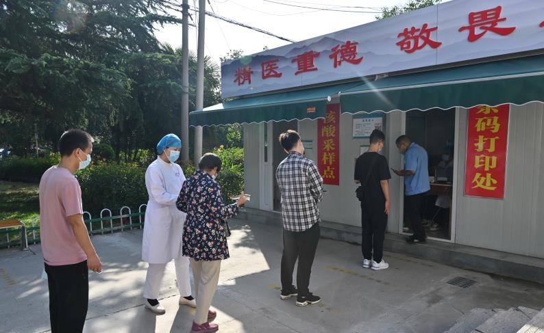 从早上七点半开始工作,她就屋里屋外忙个不停。人多了,就需要到外面维持秩序,刚喘一口气,条码打印处又出现了问题。最多的时候,分了三组人员打印条码,三组人员采集标本。为了方便快速检测,她一个个指导排队的人把预约过后的二维码刷出来,然后又帮采样人员把条形码贴到试管上交到排队的人手里。标本采集完成后她还要亲自过数,确定无误后交给实验室的人进行检测。
