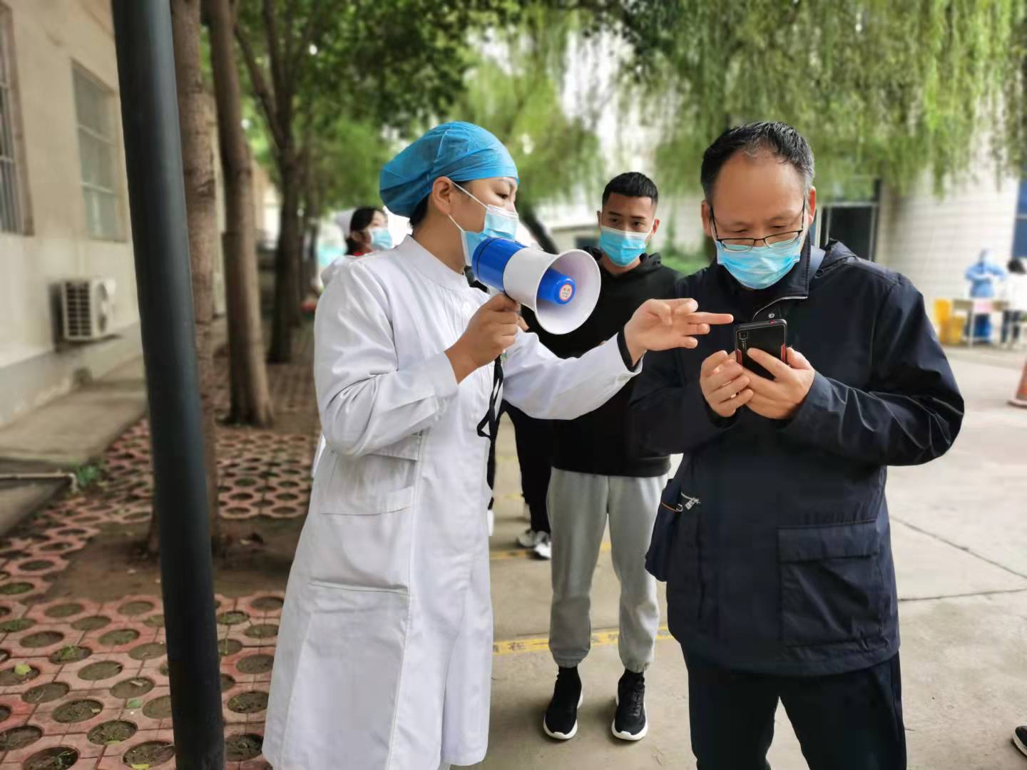 为保障核酸检测工作有序进行,疫情防控要求有效落实,我院特抽调志愿者现场指导工作,帮助群众快速预约、快速采样。同时,临时增设核酸采集点,分流采样群众,加快采样进程。