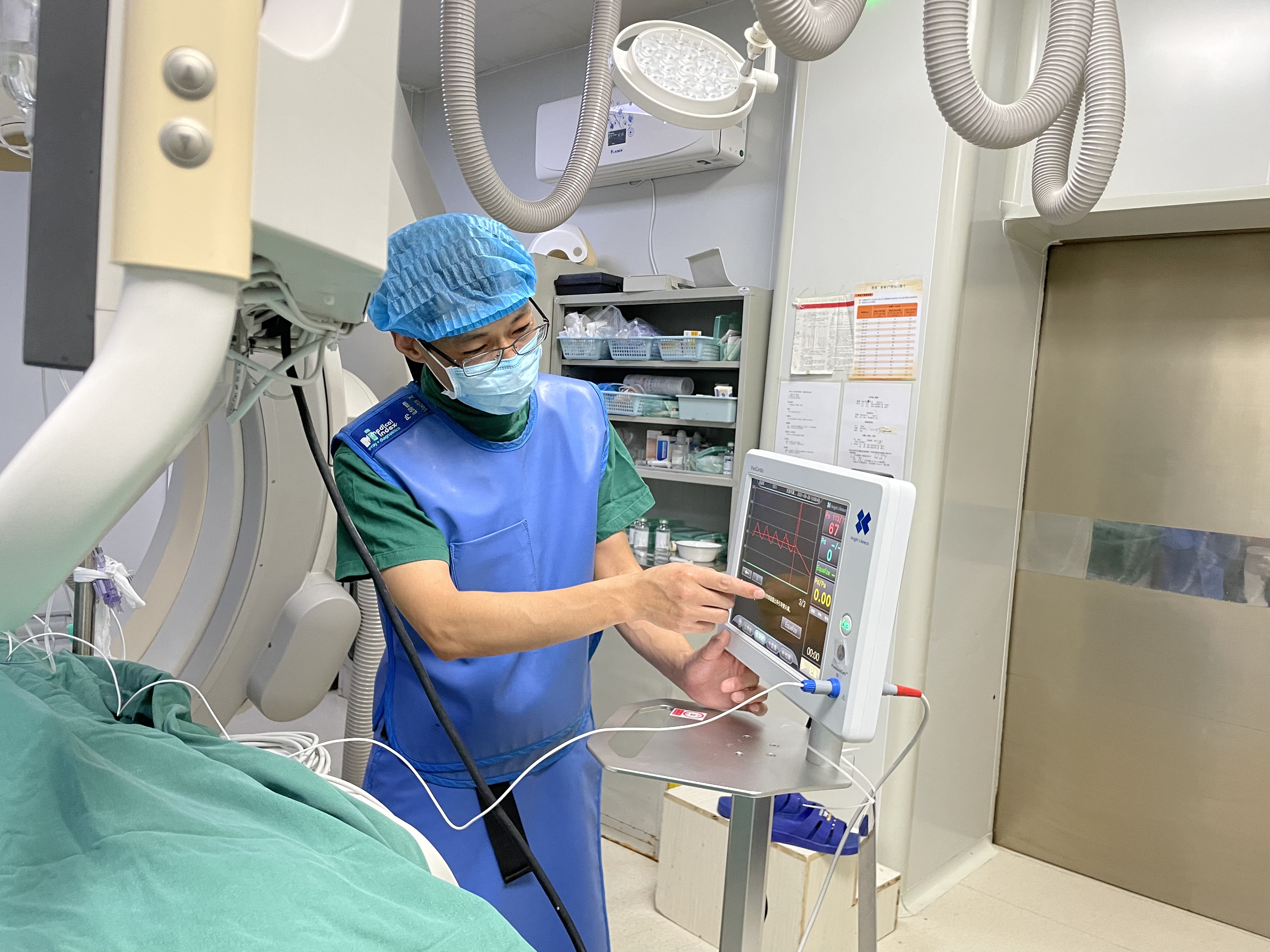 在其位,谋其责,他认真对待每一项本职工作:设备的安装与调试、操作与工作状态监控、图像信息采集处理、各种软件的娴熟运用。同时,陈培亮还具备处理设备突发故障的能力,导管室的核心设备是DSA(数字减影血管造影)系统,附属及相关设备有心脏彩超、主动脉球囊反搏泵等高新设备,这对操作者的要求极高,稍不注意就会影响手术安全,甚至造成巨大的经济损失。陈培亮对这些仪器如同对待亲人一般,经常进行细心检查和精心保养,及时发现隐患并排除,避免不必要的损失。并在术前负责监督检查医护人员和患者的安全防护工作,为介入诊疗手术的顺利完成保驾护航。